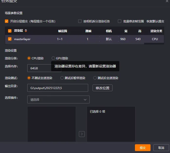 【客户端】弹窗提醒用户选择测试后全速渲染必须设置测试帧。
