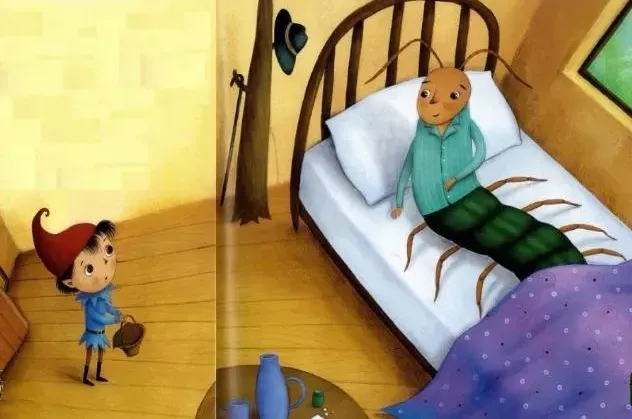 嘟嘟心里觉得很奇怪,于是偷偷到隔壁去查看,发现蜈蚣叔叔正躺在床上。