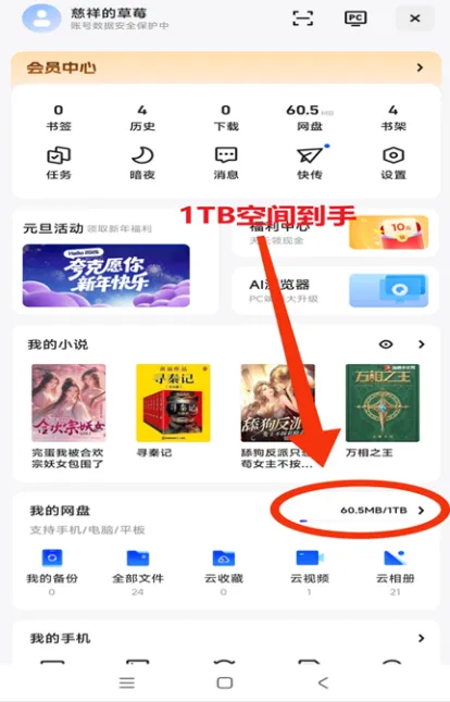 夸克网盘扩容1T教程