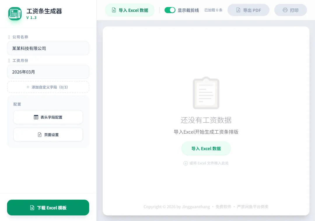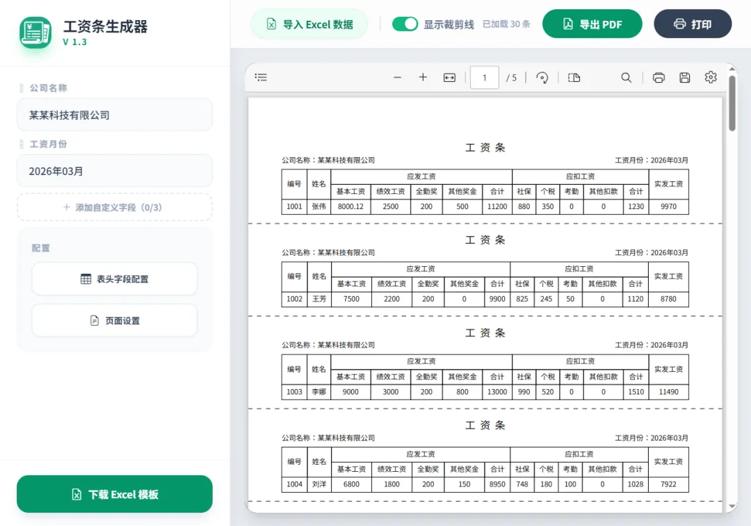 简单来说,你只需要做一件事:把原始的Excel工资表扔进去,它直接给你生成可以直接打印的工资条。