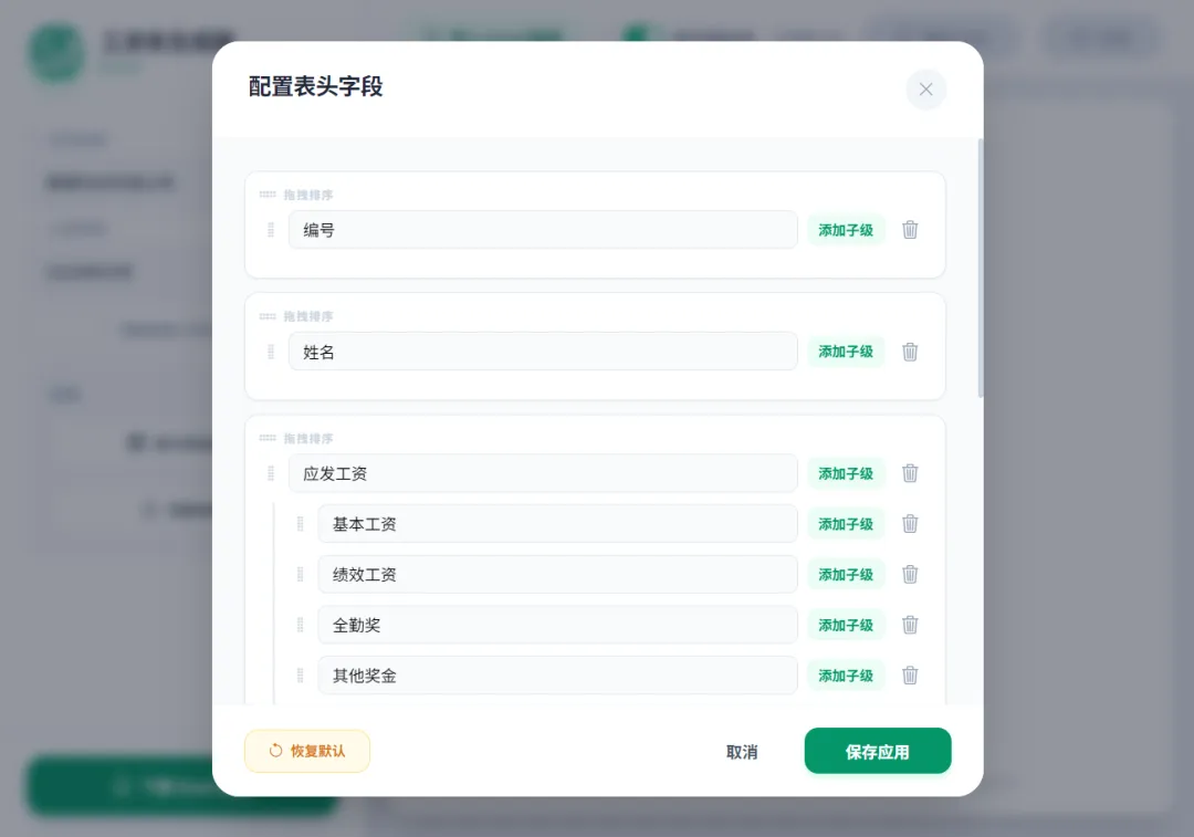 有些公司的工资表表头不是简单的一行,可能有二级甚至三级嵌套(比如“薪资构成”下面再分“基本工资”“岗位津贴”这种)。这个工具能直接识别复杂表头,不用你为了生成工资条特意去简化表格。