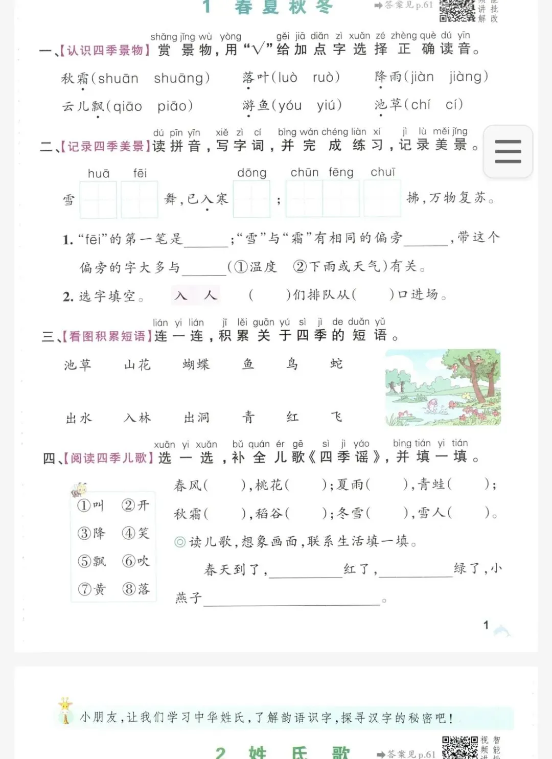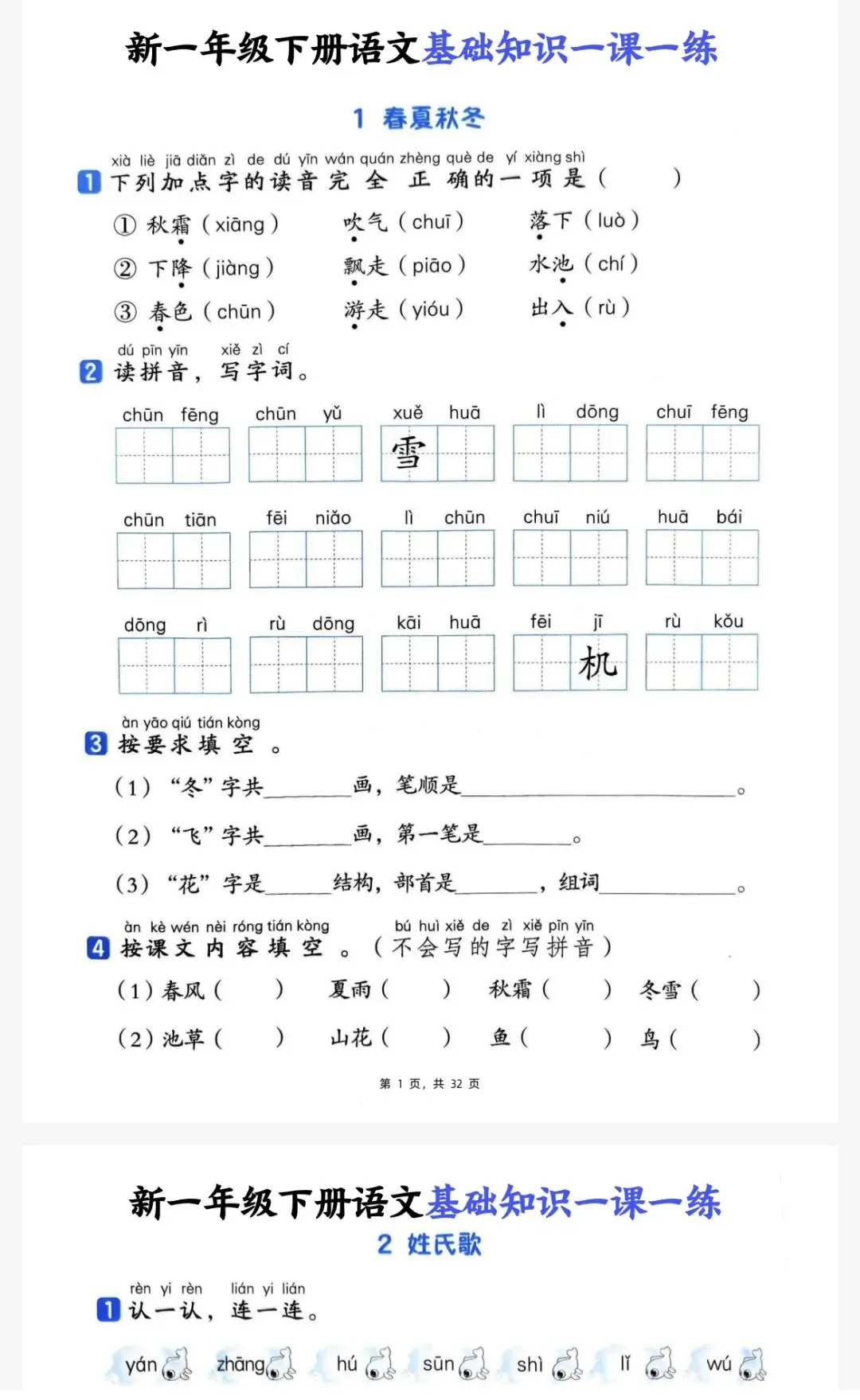 【资料合集】2026春新版人教统编版语文1年下册新教材小学语文1下资源汇总(含课堂笔记+课件教案+试卷+教师用书+同步练习等),高清电子版