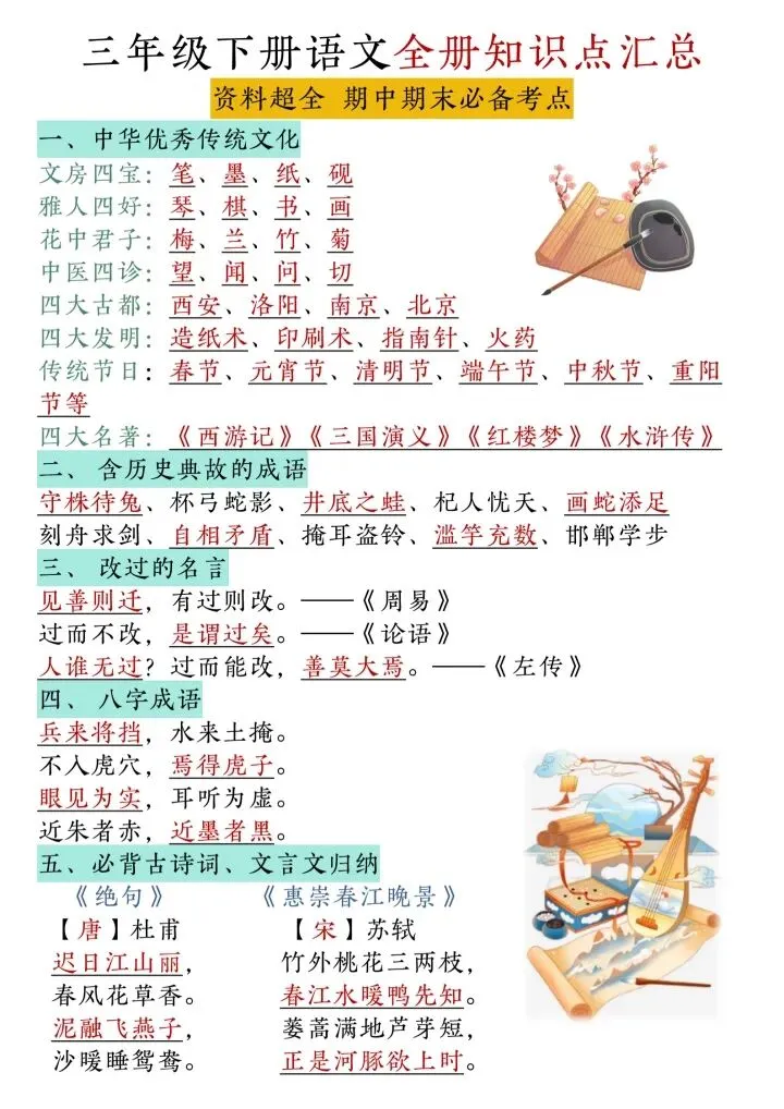 今日份分享三年级下册语文全册知识点汇总(完整电子版可打印)!这份资料已经整理成可打印版本,方便孩子随时翻看学习,建议家长先收藏,再转发给身边有需要的家庭,一起帮助孩子高效学习~