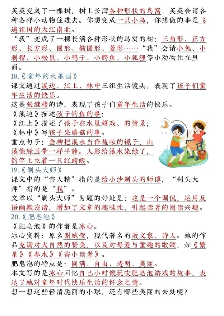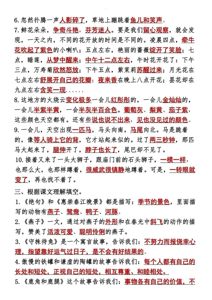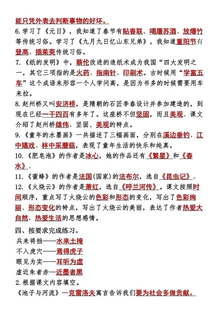 三年级下册语文全册知识点汇总(完整电子版可打印)
