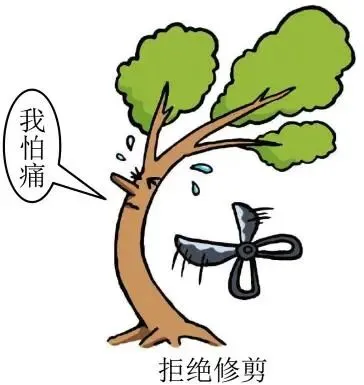 漫画里有斜弯的树苗,树干绘有人形,面露恐惧、泪水飞溅,面对锋利剪刀喊出 “我怕痛”,标题为 “拒绝修剪”。作者持批判态度,修剪是修正、剔除糟粕,拒绝修剪难成才,映射人拒改错误、剔陋习终将行差踏错。