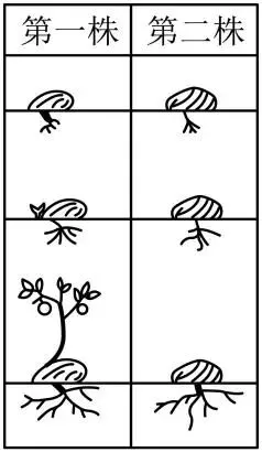三幅递进画面中,两株植物初始齐头并进、中期步调一致,最终一株枝干挺拔、根系深扎,另一株枝干纤细、根系浅淡。核心隐喻成长的根基是积淀,批判浮躁求快,印证厚积薄发,适用于个体、教育、社会发展等维度。