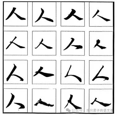 一撇一捺,构成“人”字。图片中的字,虽笔锋、形态各不相同,却均具有“人”的骨架与神韵。人生百态,境遇、选择各不相同,但同样需要坚守立身之本。