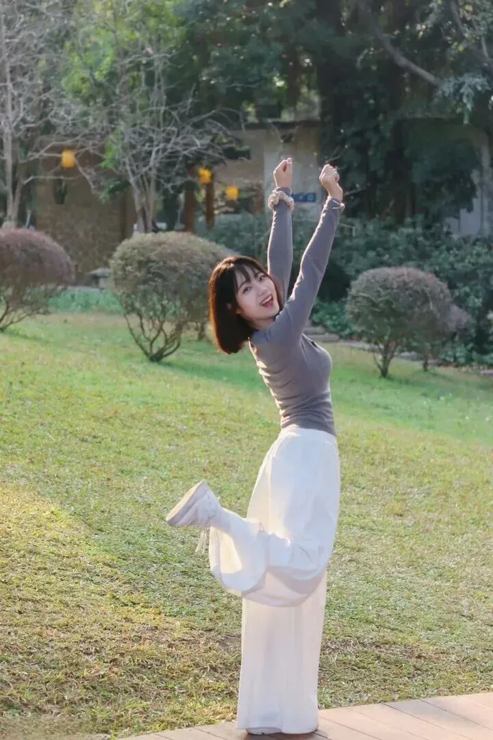 活泼就动起来。女生跳起欢快舞蹈时,她的衣服在舞步的影响下一起随之运动。一套适合于朋友聚会或者户外活动的,拍照效果好。