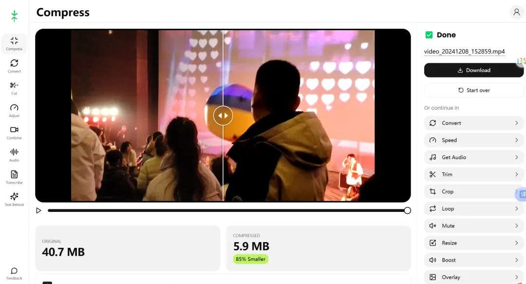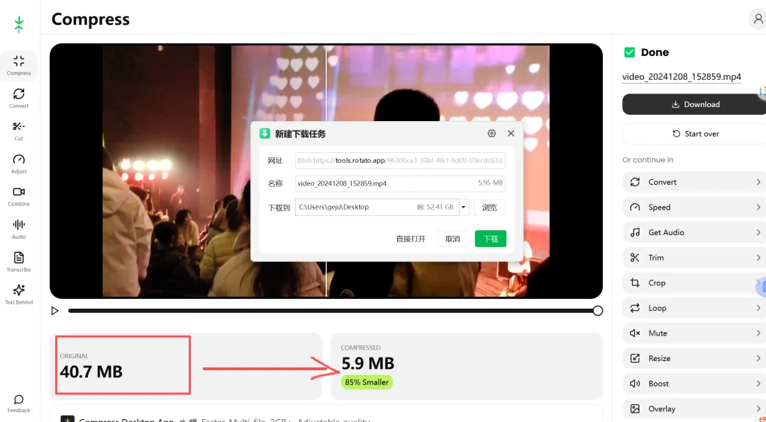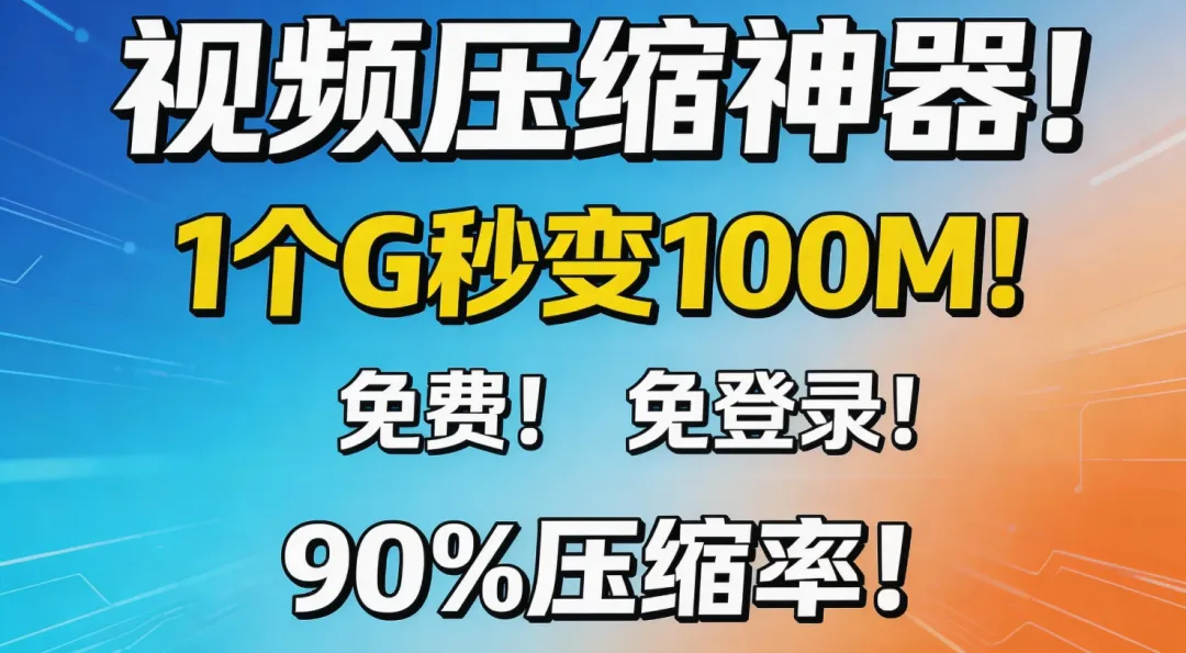 视频压缩神器,90%压缩率,免费!免登录!