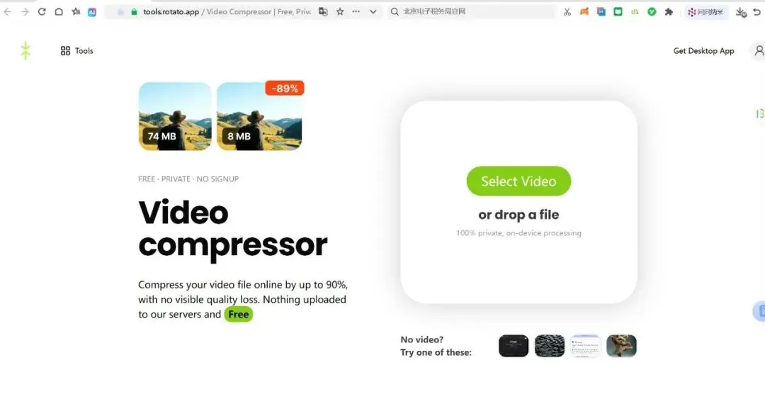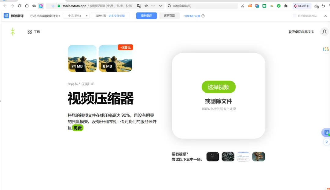 本地压缩:视频全程在浏览器里处理,不上传任何服务器 -
