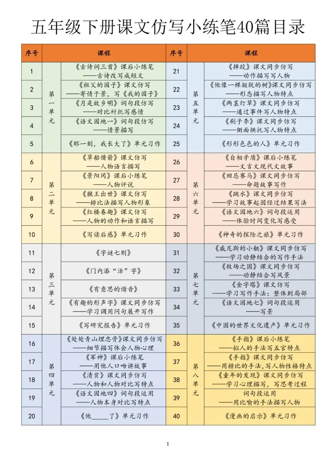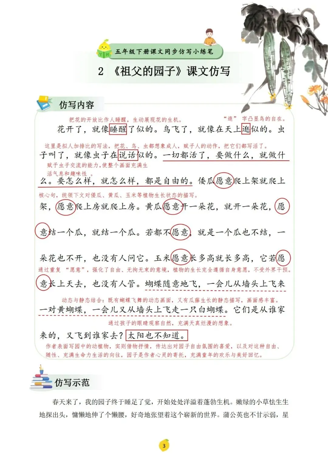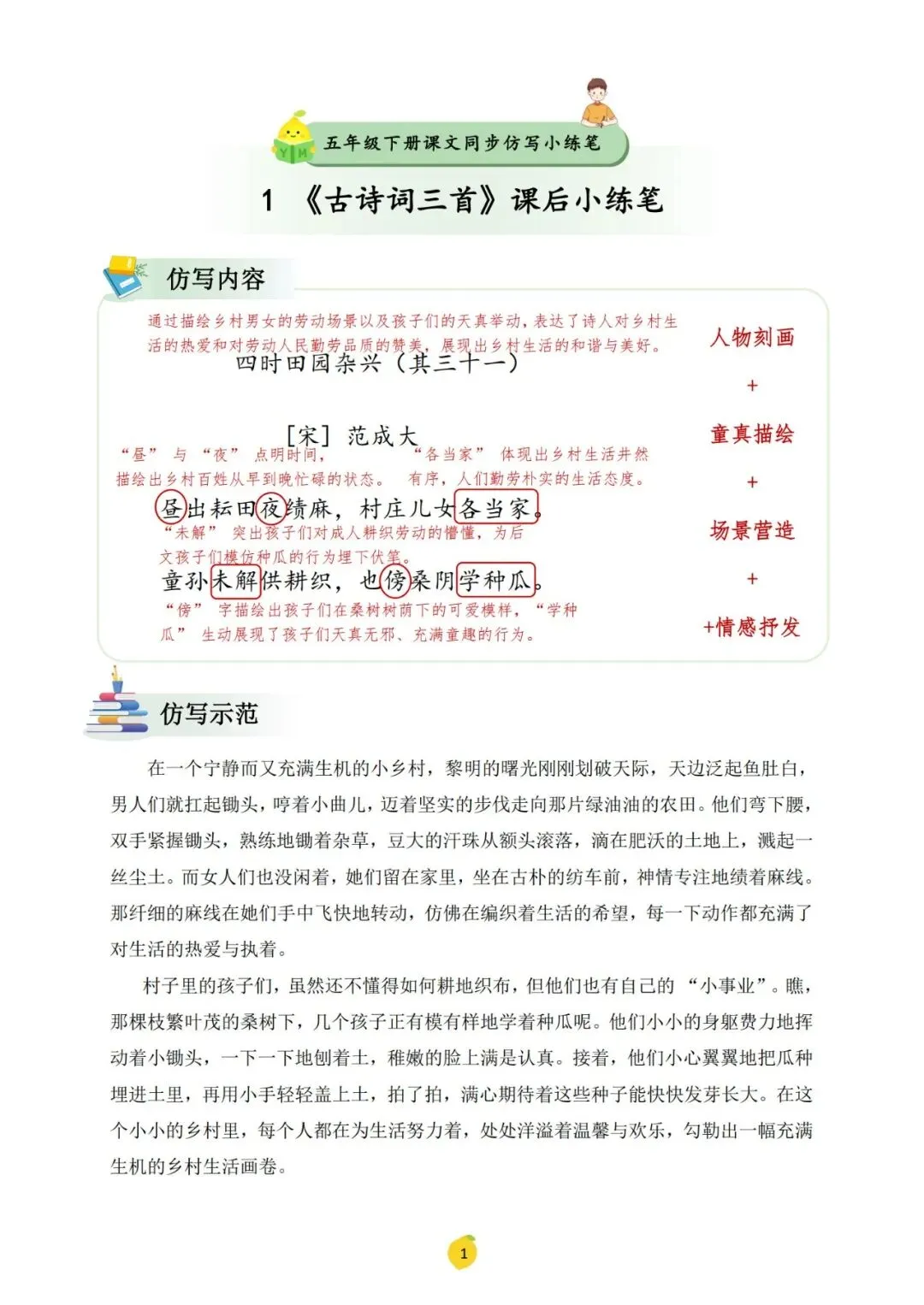 26春五年级(下)语文课文仿写小练笔 可免费下载打印