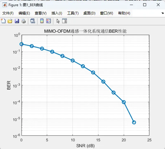 综上所述,基于 MIMO-OFDM 的通感一体化系统是一个兼具理论意义和工程价值的研究方向。通过构建共享 OFDM 波形、多天线阵列发射、通信接收恢复以及目标回波感知处理等完整模块,可以在统一平台上实现信息传输与环境感知的双重功能。该系统在通信侧能够通过误码率、速率和信道估计误差等指标体现链路性能,在感知侧能够通过距离像、距离-速度谱和角度谱等结果反映目标探测能力,具有较强的系统性和展示性。更重要的是,这类系统所体现出的资源复用、功能融合和协同优化思想,正是未来无线网络演进的重要方向。因此,对该系统进行建模、仿真和性能优化研究,不仅有助于加深对 MIMO、OFDM、阵列信号处理和无线感知等关键技术的理解,也为后续面向 6G 场景的智能无线系统研究提供了良好的基础。