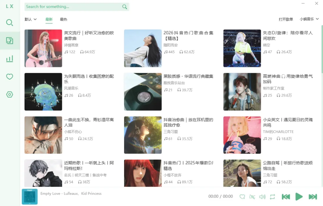 LX Music,很多人把它称为洛雪音乐,它是一款免费、开源而且没有广告的音乐试听播放器。它可以让使用者不再需要安装多个音乐APP,只需要在其中切换不同音源,即可在它的APP里免费听歌了。