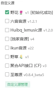 7、可以用这个方法添加多个音乐源,点击音乐源前面的方框,显示初始化成功,就说明这个音乐源已经起作用