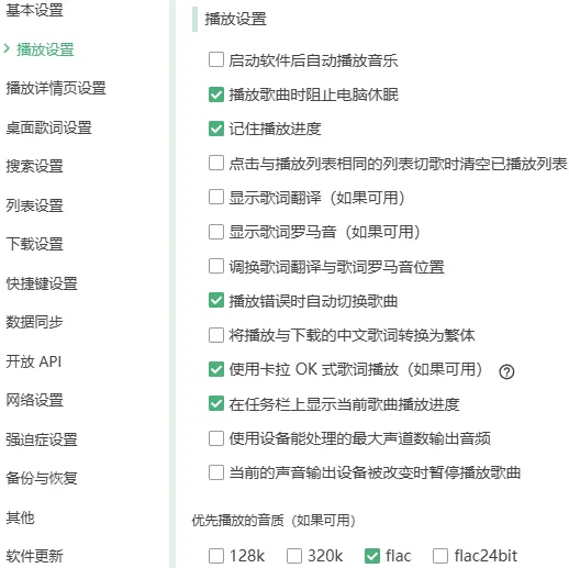 9、进入播放设置,可以设置音质,如果喜欢无损音乐,可以在这里选择