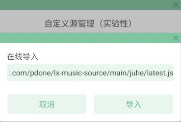 6、选择了在线导入,在对话框中输入一个自定义的源,点击导入