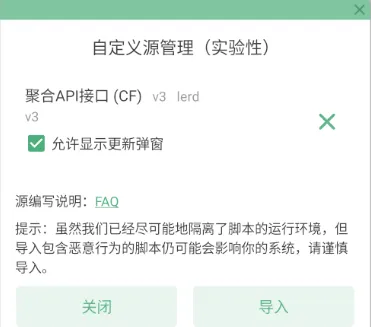 4、弹出自定义源管理,点击导入,两种方式,本地导入和在线导入