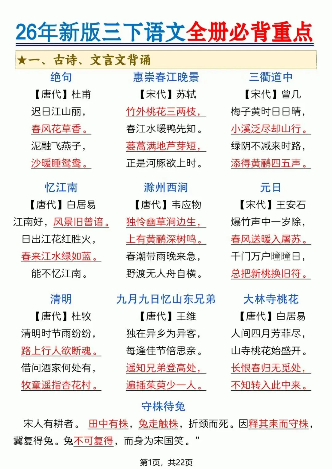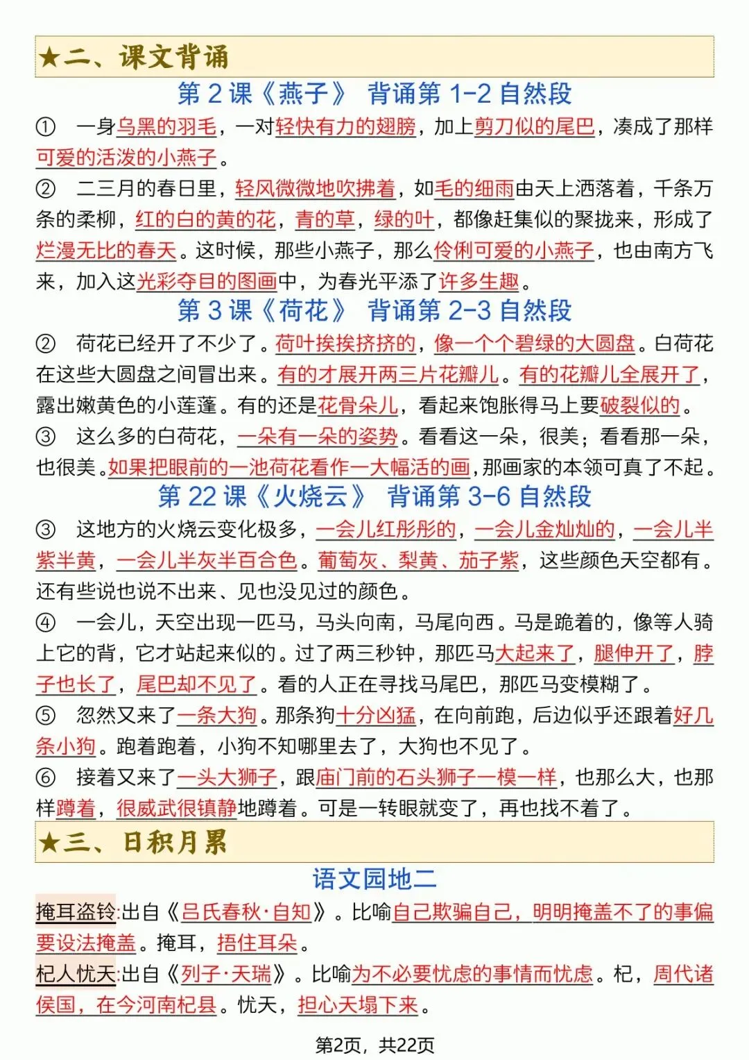 可下载丨26春三年级下册语文全册必背重点(十二重点知识点),电子版