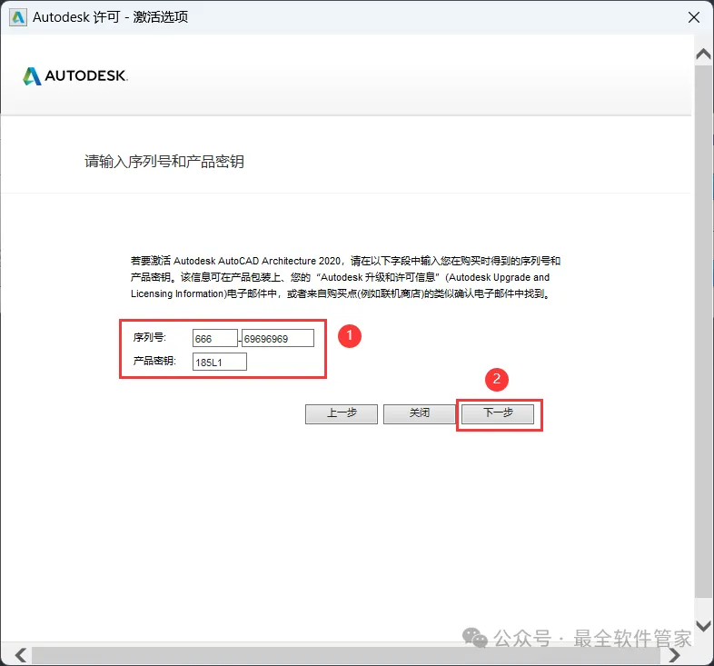 25、将程序的【Activation】填入到软件的【激活码】内,再点击【下一步】