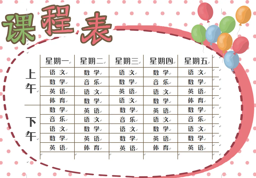 课程表格模板100多套(附电子版、可下载编辑打印)