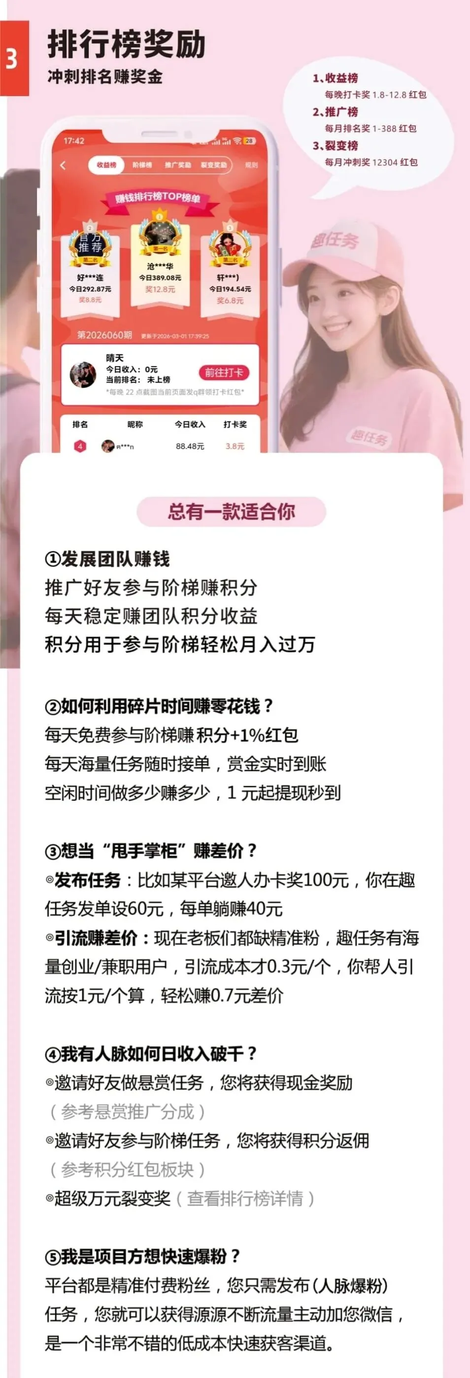 趣任务Pro:这个也是去年就出来了,是悬赏平台板块,然后最近又出的新版块爬墙板块,跟上面星小助爬墙模式一样,也是每天1分钟爬爬墙即可,刚刚出来积分应该会有溢价,可以撸一波!(还没玩的伙伴后台私信小编拿下载地址拿教程)