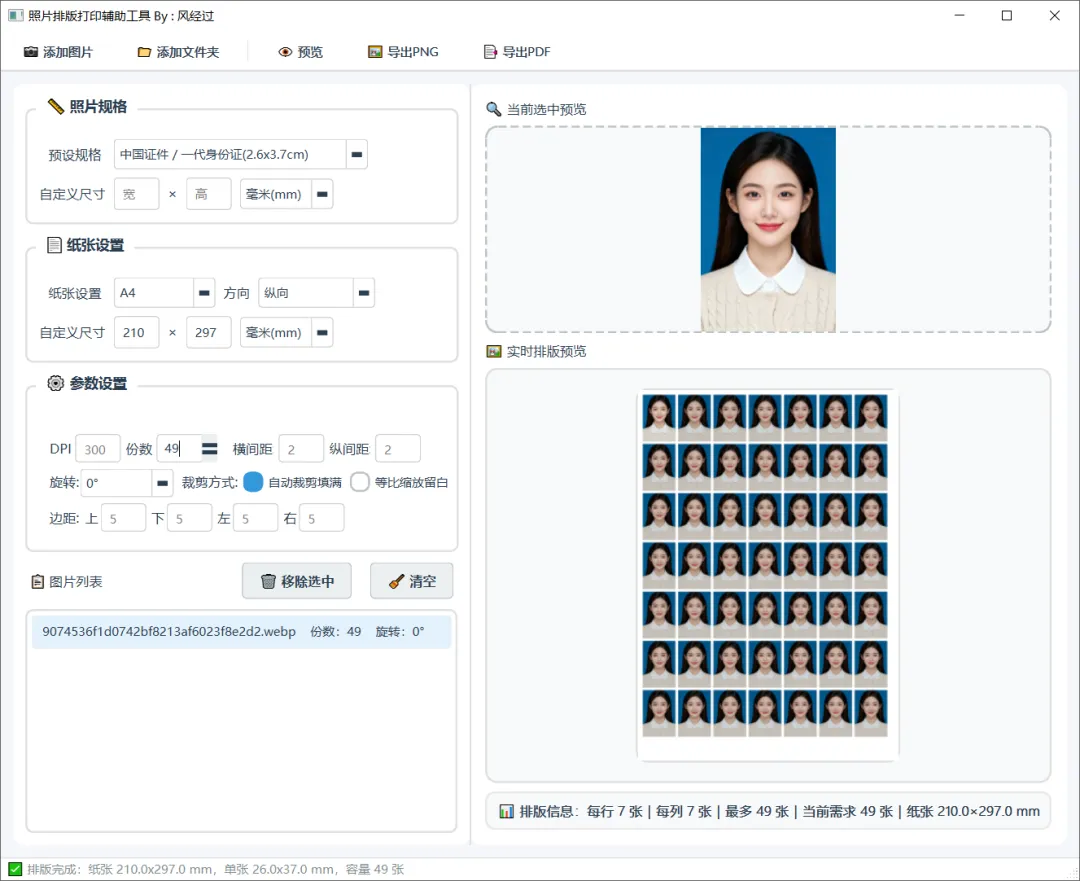 这是一款由吾爱大佬开发的免费工具,能够高效进行照片排版打印。软件为单文件免安装版本,操作简单便捷。