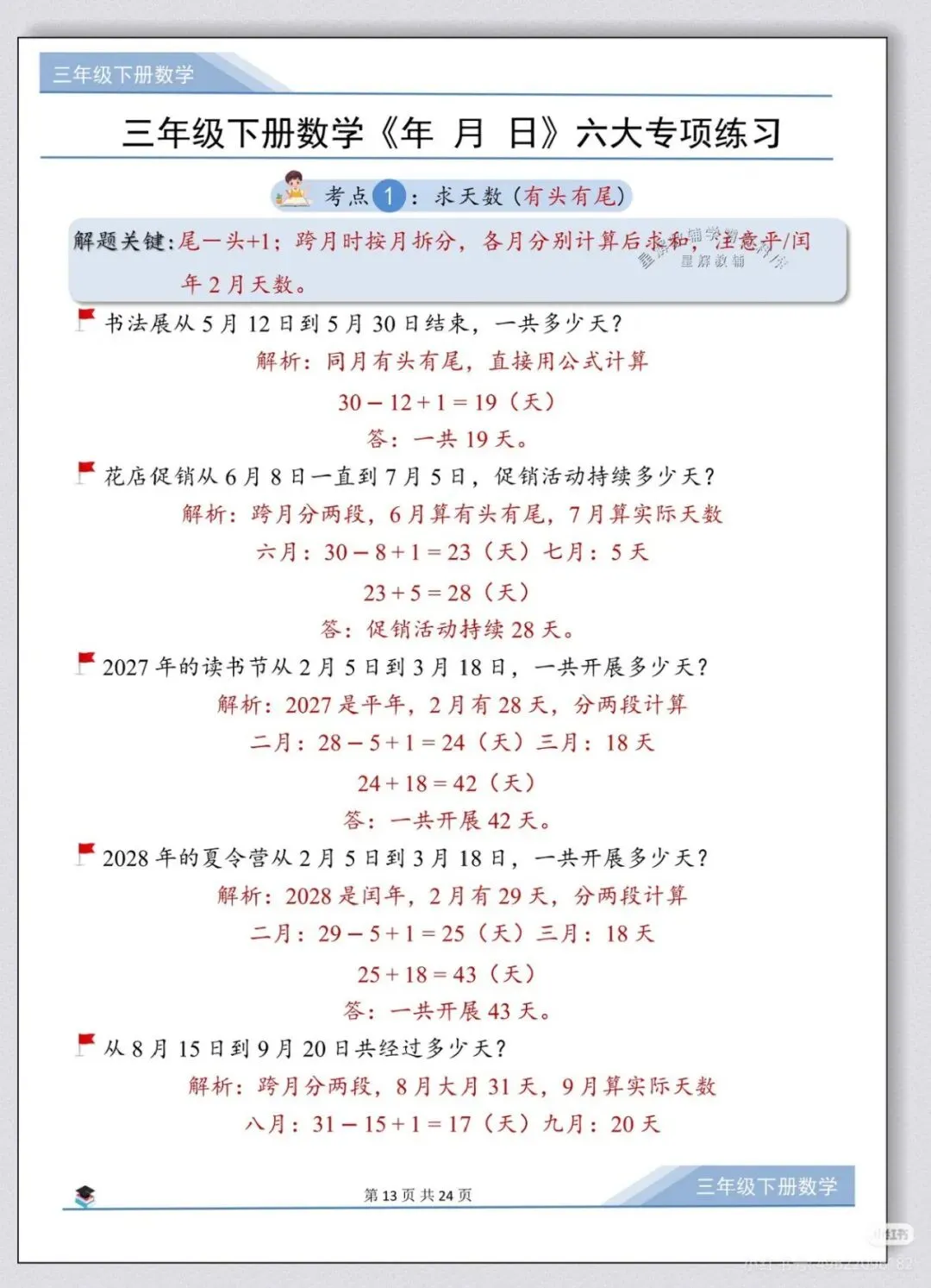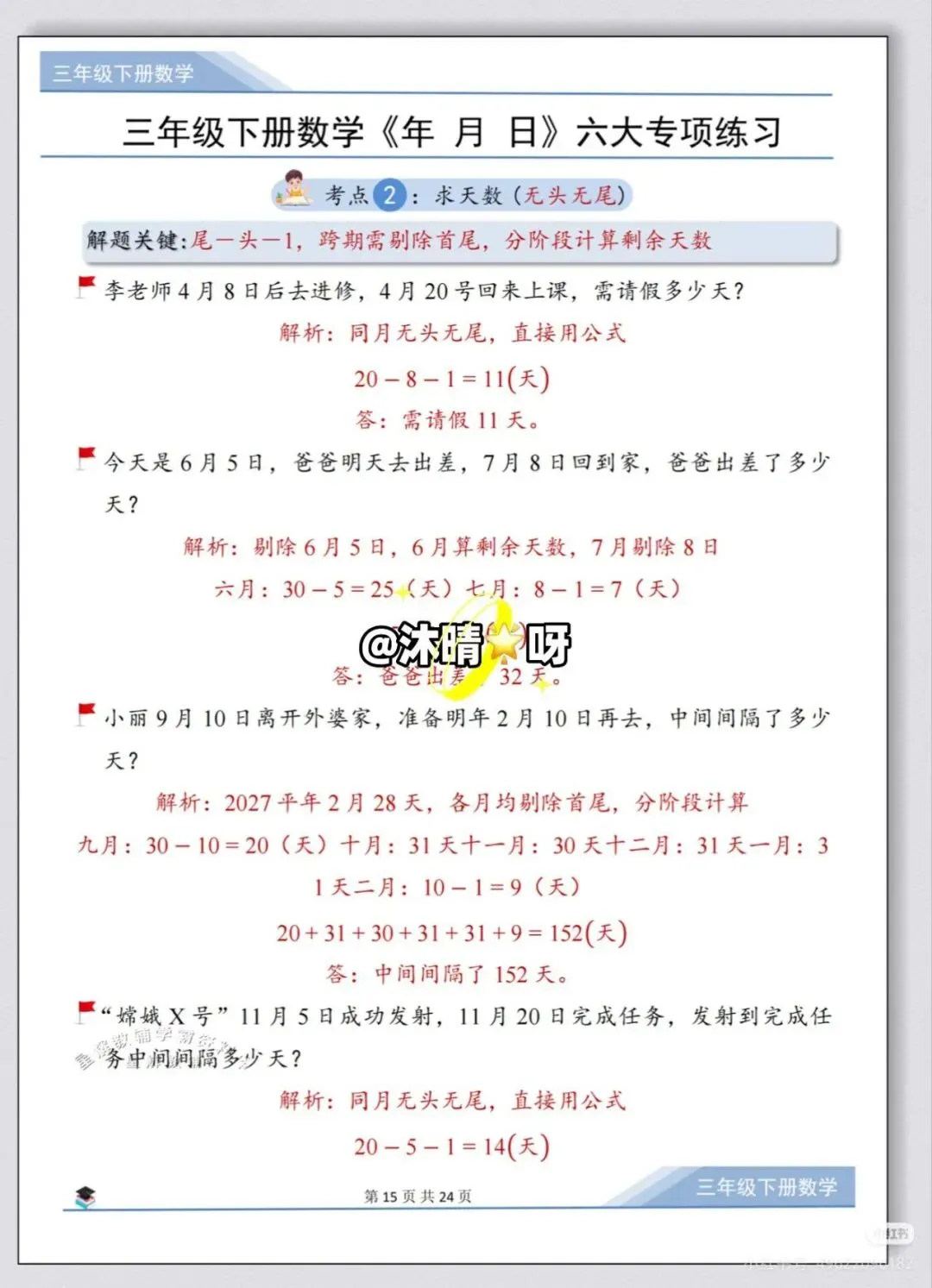 孩子学《年月日》总是分不清大小月、算不准天数?一到应用题就懵圈?别急!这份老师内部都在用的专项练习,帮你彻底攻克这个难点,让孩子期末复习效率翻倍!
