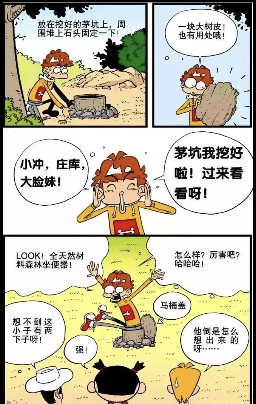 【漫画】小时候藏在课桌里看的漫画(阿衰)野外厕所