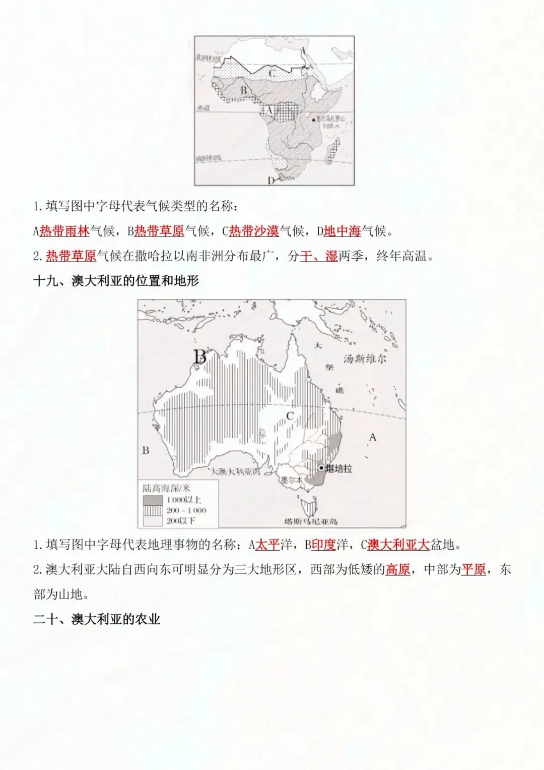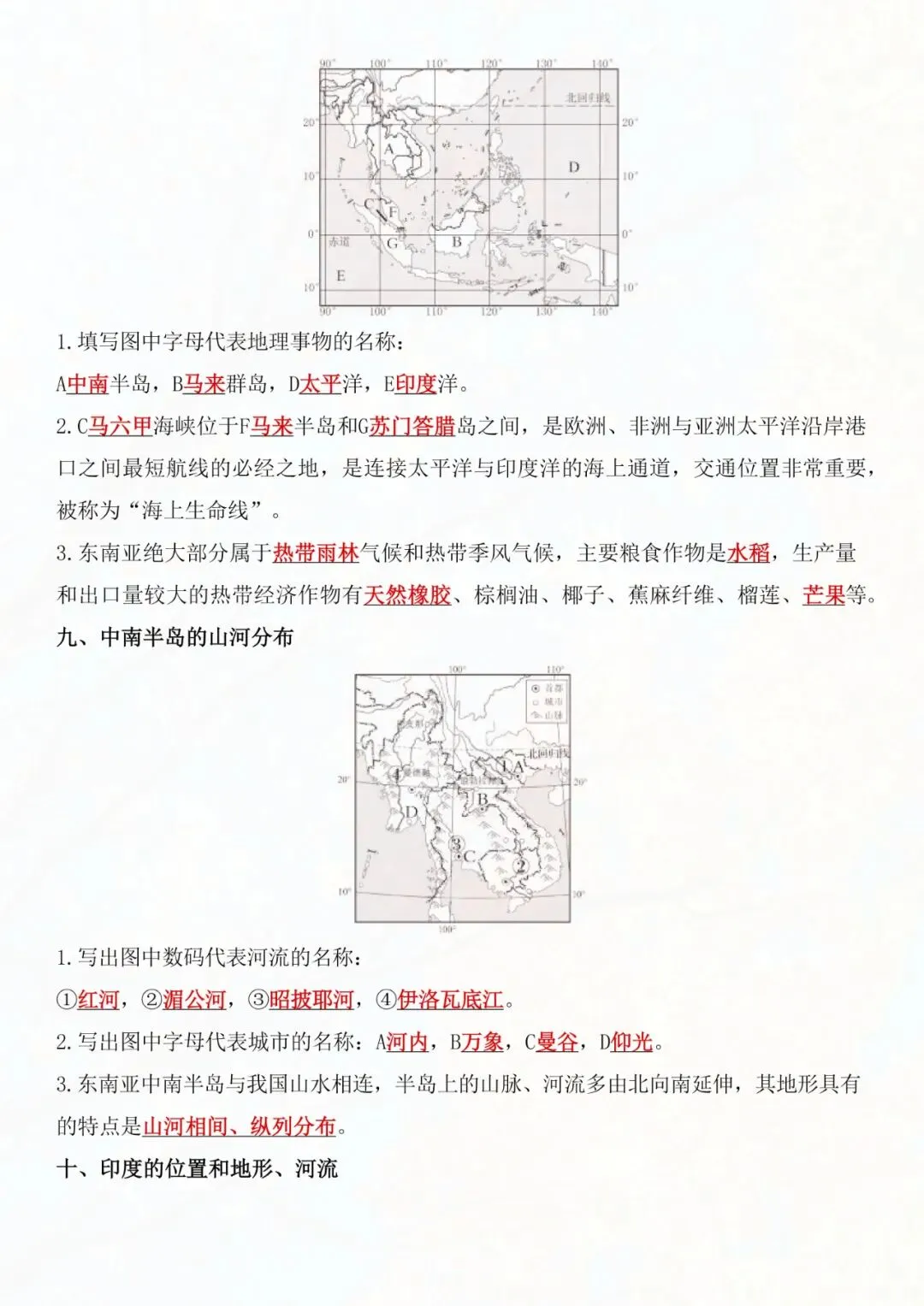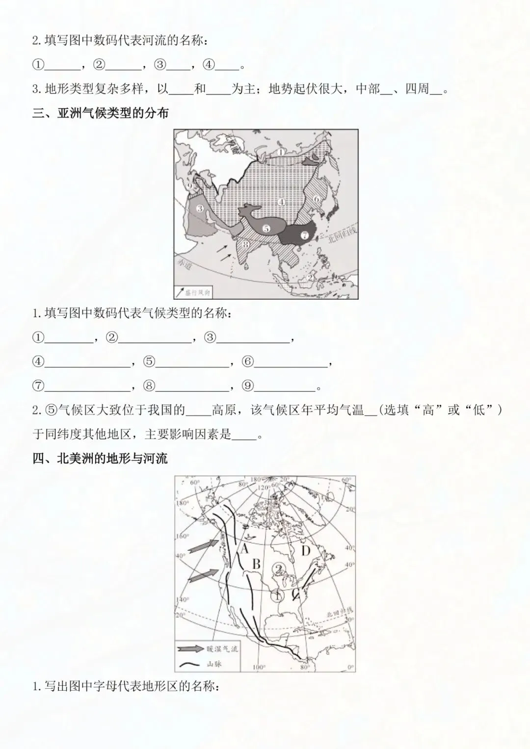 今天老师给大家整理了:七年级下册地理期末常考填图填空版电子版可打印!