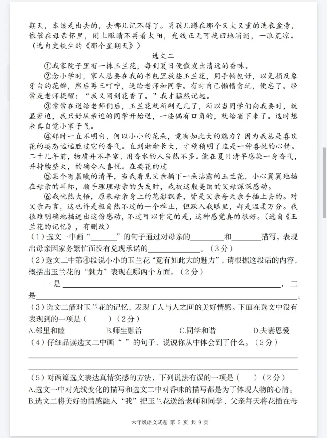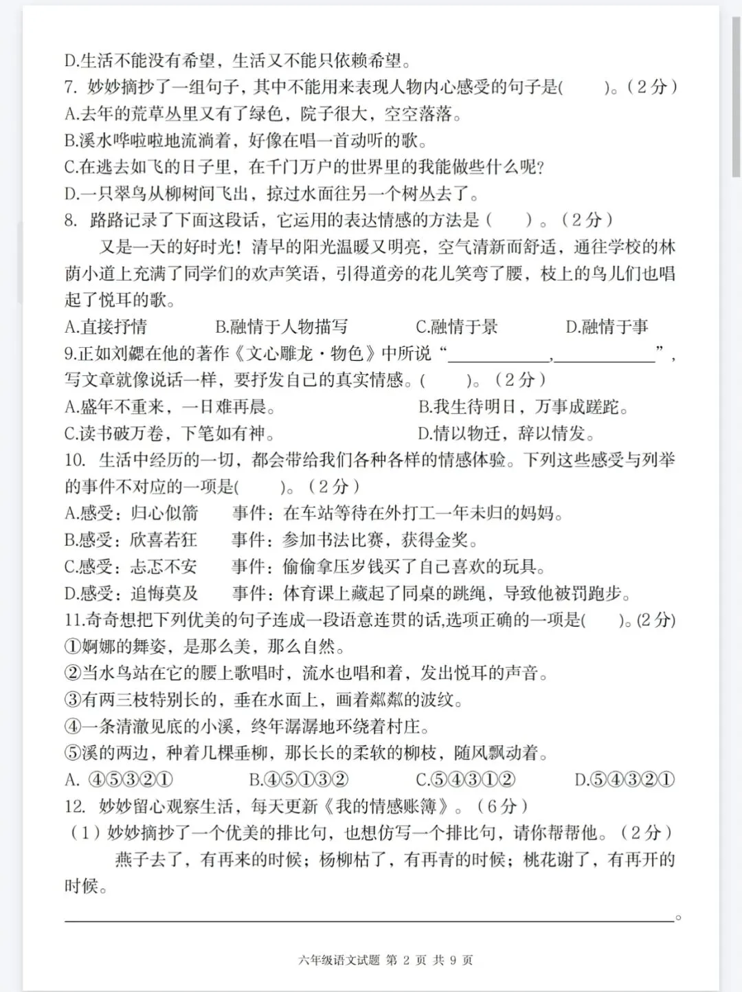 部编版六年级下册语文第三单元情境精编卷综合测试卷,情境题可直接打印有答案