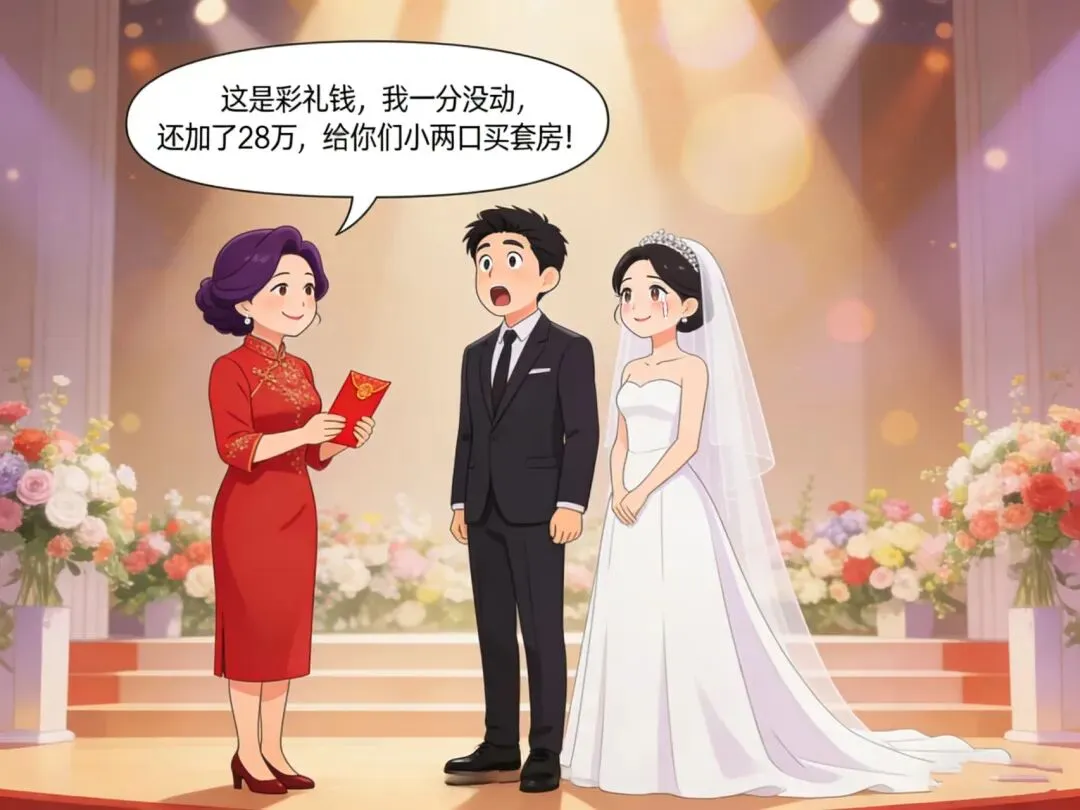 趣味漫画:结婚前岳母说:彩礼必须给18万!婚礼那天,岳母上台掏出一个大红包说:这是彩礼钱,我没动,还加了28万,给你们买套房!