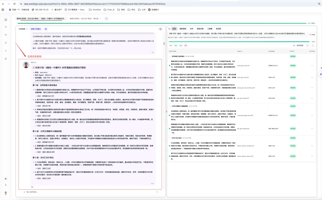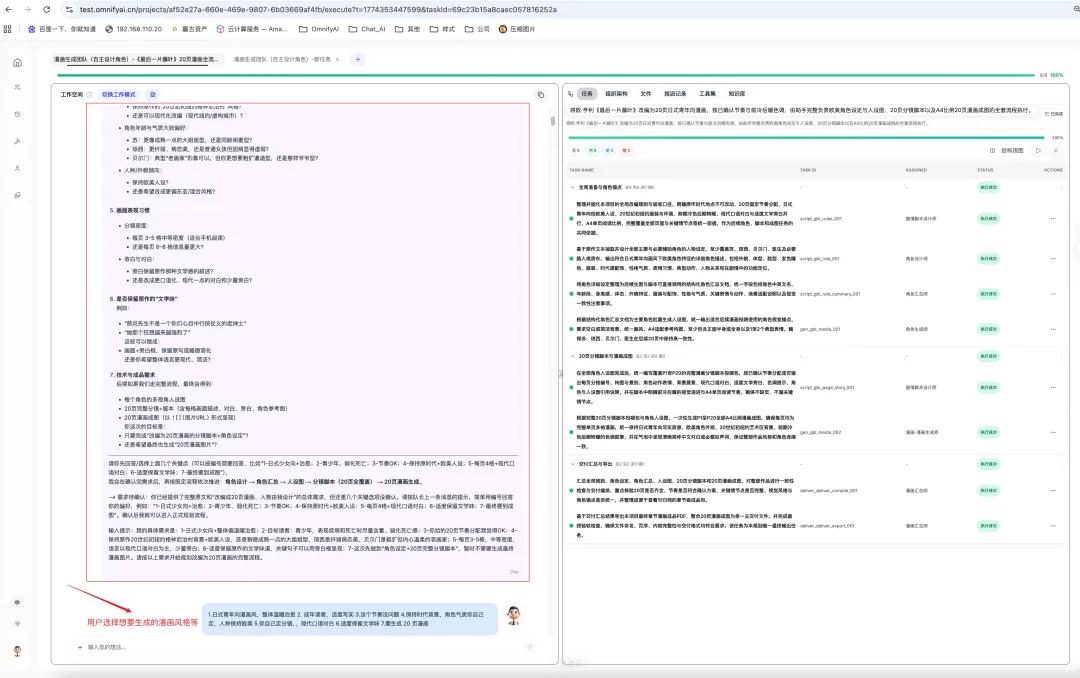 3. 选择预设漫画风格(写实风、日漫风、治愈风等),也能用口语化描述告诉队长需求,无需写专业提示词。平台会自动生成全套创作任务规划, 全程不用人工干预 ,完整流程分为三大阶段: