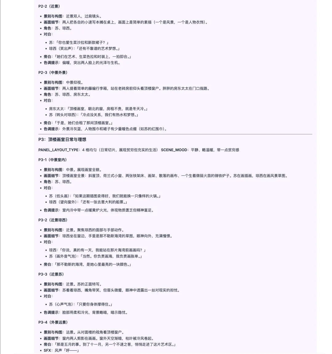 ✅ 中期创作:编分镜+绘成稿,连贯叙事不脱节