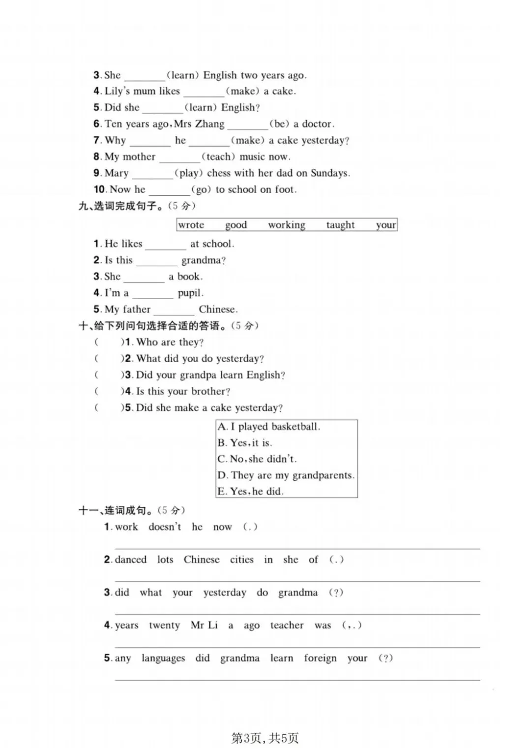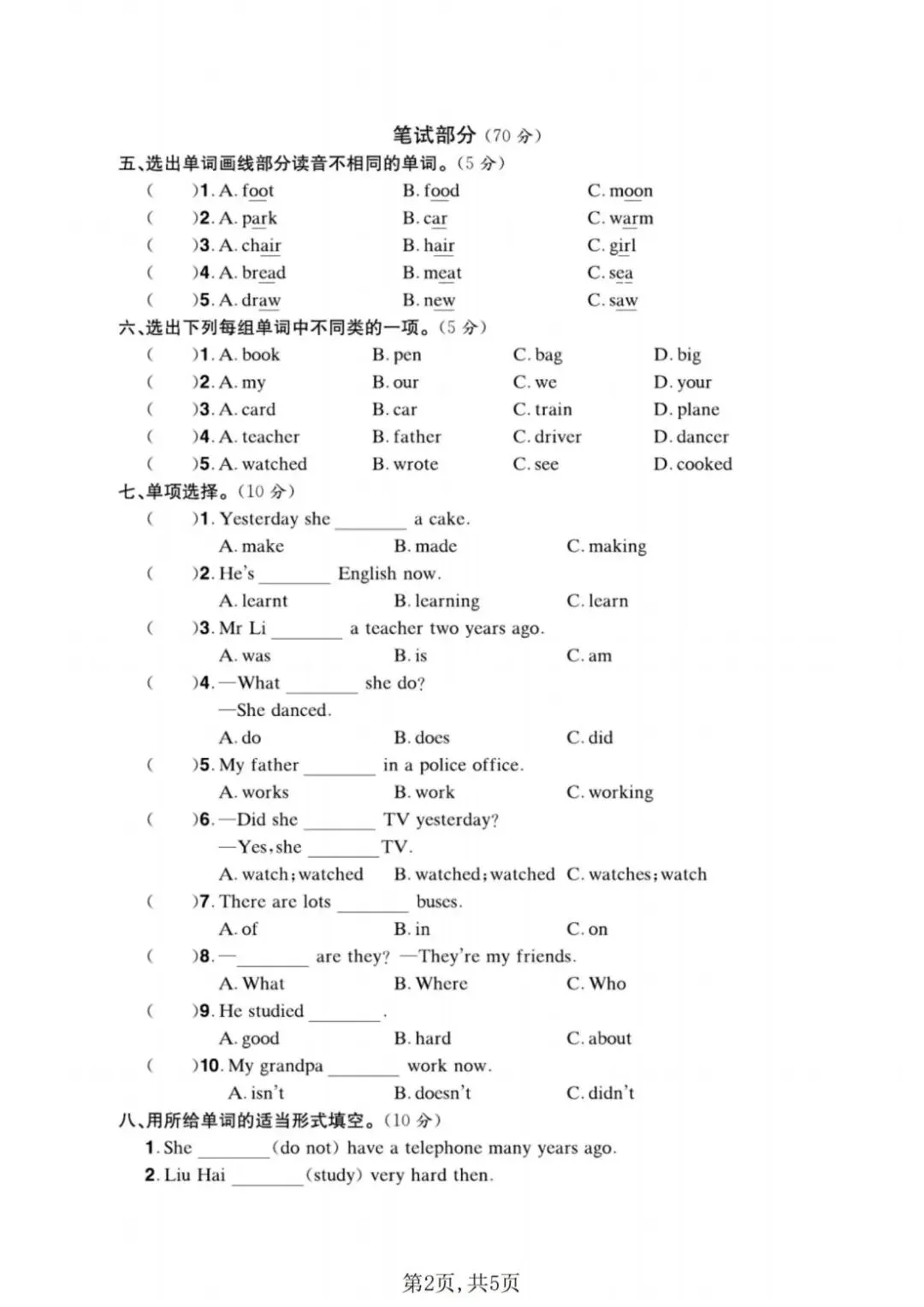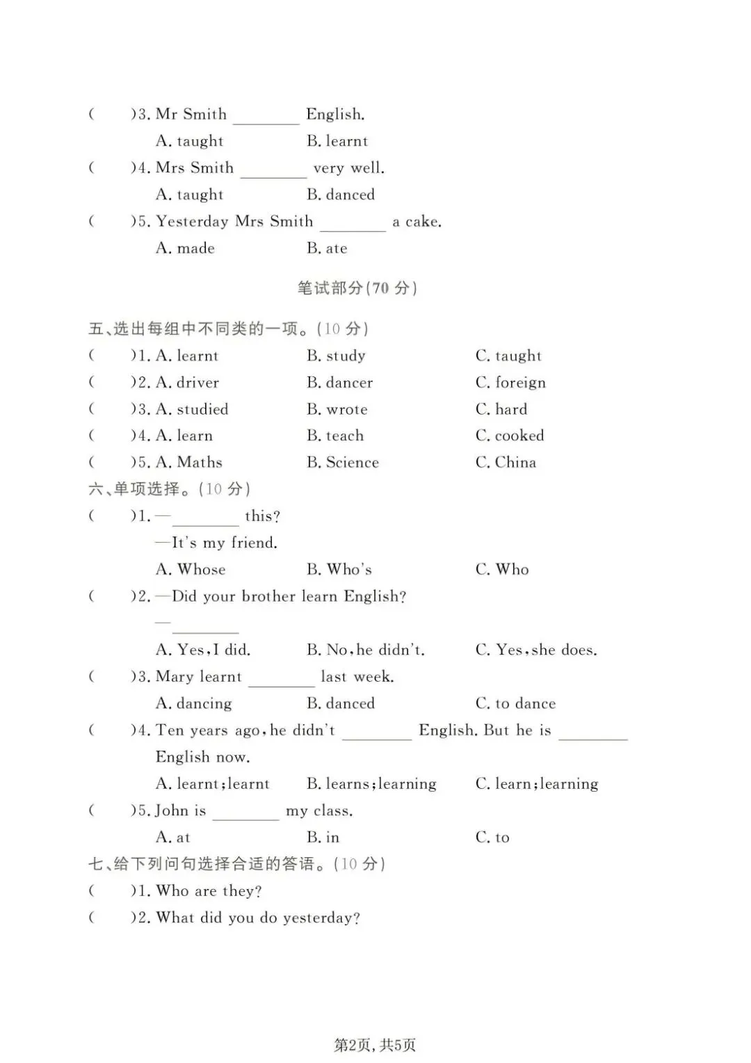 26春外研版五年级下册英语《第二单元质量测试卷》,共3套,含答案,电子版可打印。单元测试卷作为检测孩子的学习工具,帮助孩子查缺补漏、提升学习成绩。有需要的家长快打印给孩子练一练。
