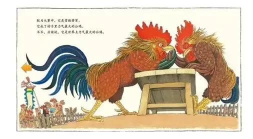 可是,终于有一天,村子里又出了一只公鸡。哇!它比世界上力气最大的公鸡还要厉害!从此,大公鸡喝起酒来。它成了村子里最能喝酒的鸡。喝醉以后,它就扯开嗓门,夸耀自己年轻时多么力大无敌。