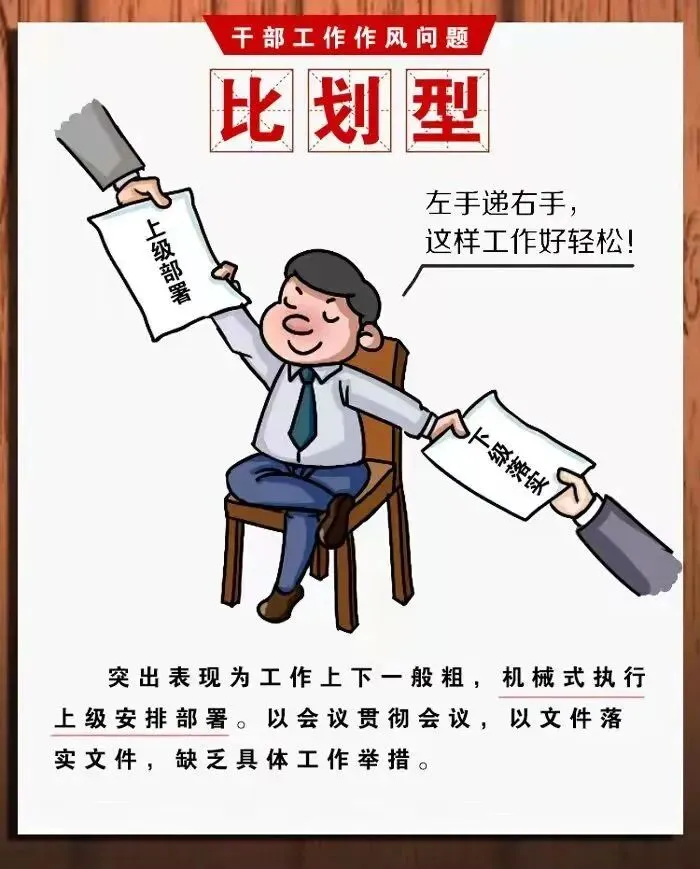 作风建设丨漫画说纪——中纪委点名10类干部作风问题要不得! 干部不担当不作为的表现有哪些?哪些形式主义、官僚主义作风问题需警惕?中央纪委国家监委网站梳理了十种干部作风典型问题,以为警戒。 来源:中央纪委国家监委网站