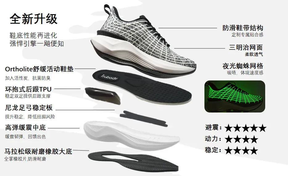 先说这款被称为“体测作弊鞋”的Trubody夜光超轻跑鞋。