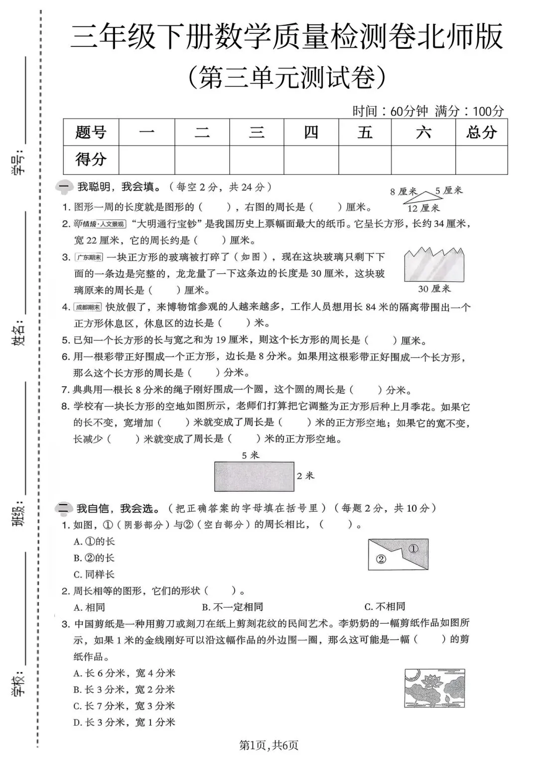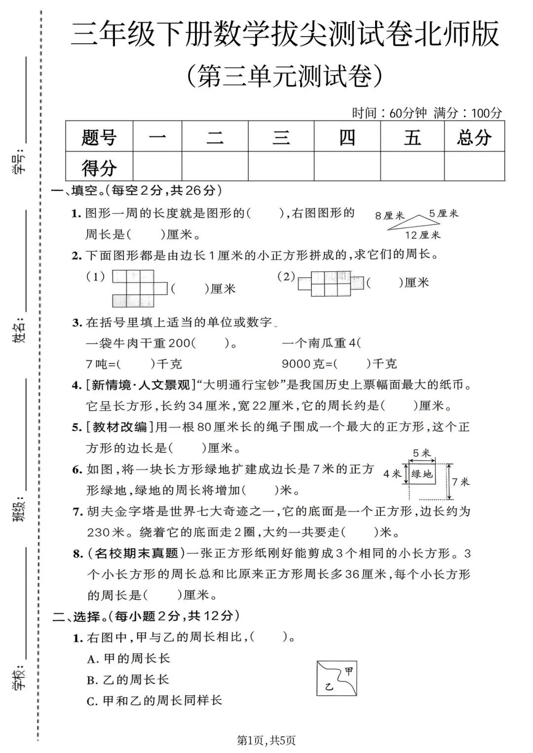 2026春三年级下册北师大版数学,第三单元检测试卷3套,含答案,电子版可下载打印。这两套卷子针对三年级下册第三单元(周长),含质量卷、提升卷,建议先做质量卷打基础,再用提升卷挑战,及时查漏补缺再针对性提高,需要的朋友抓紧领取,让孩子用起来吧💪!小伙伴赶紧分享给班级群或者家长群,免得回头找不到哦!