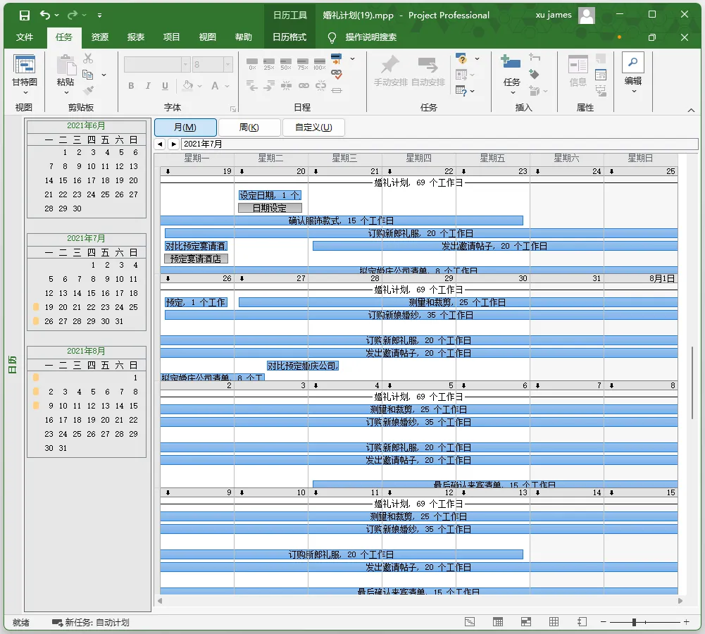 (4)区域为甘特条形区域,由条件格式合成.同时如果在(1)区域中滚动滚动条,内容能够自动的进行时间轴的滚动.