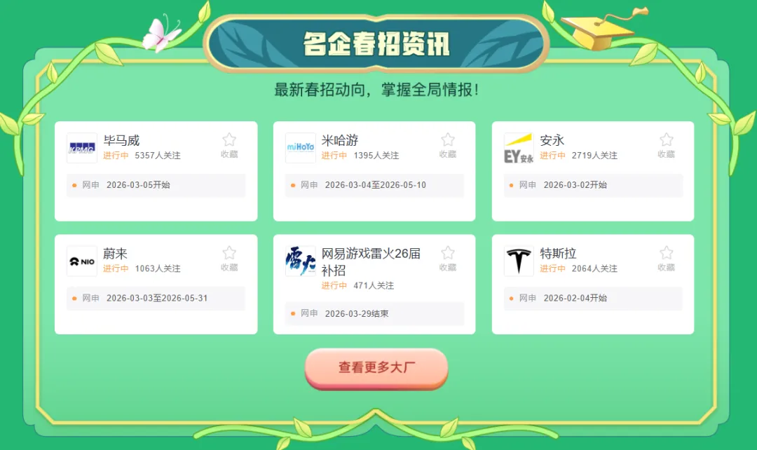一网打尽名企网申时间,再也不用手动检索春招时间啦。紧张的春招,需要用最快的效率应对,掌握全局情报就现在😉