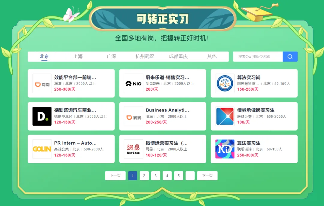 搜罗可转正实习春招岗位,以高质量就业为目标地实习,既让自己在毕业前更早感知真实职场、明确未来就业方向,也让自己可以另辟蹊径、突围校招。