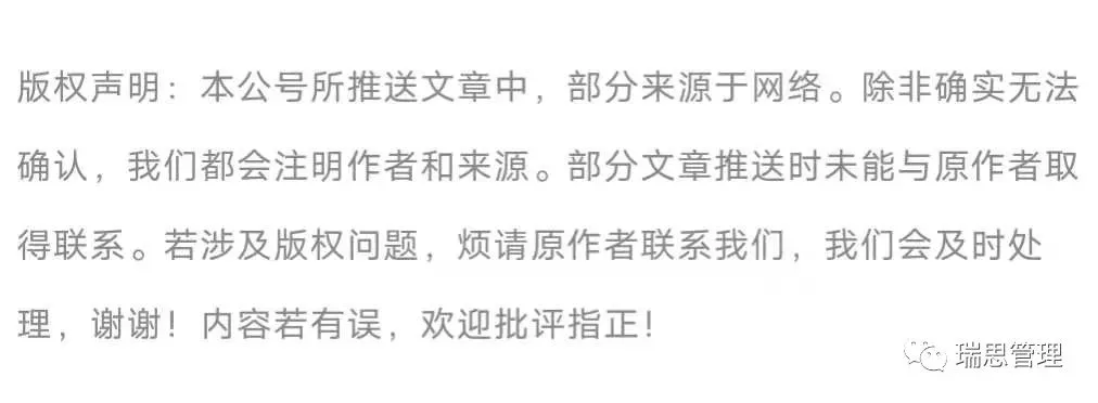 欢迎阅读本文。您可点击上方“瑞思管理”—右上角“…”—“设为星标”,第一时间收到最新推送。如果觉得文章不错,欢迎在文末“阅读原文”“分享”“收藏”“点赞”“在看”。