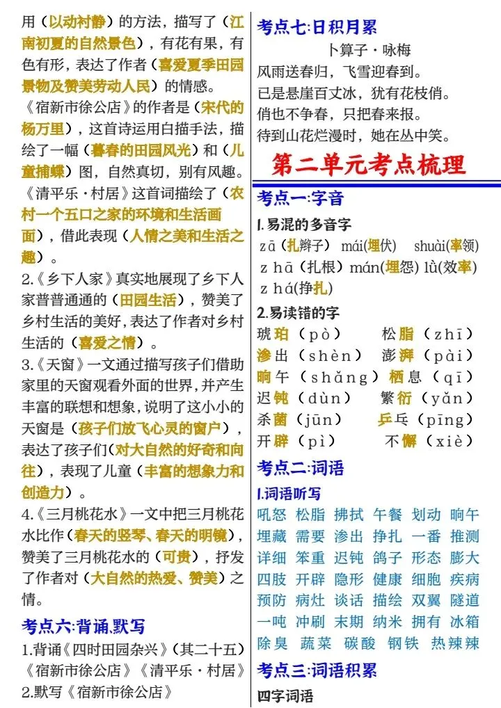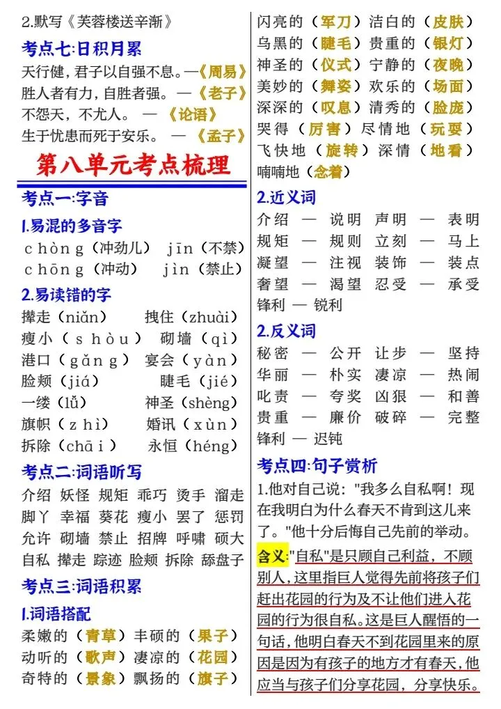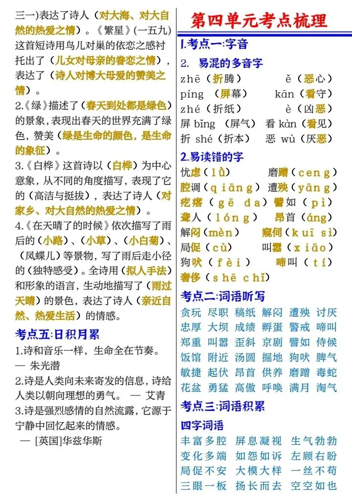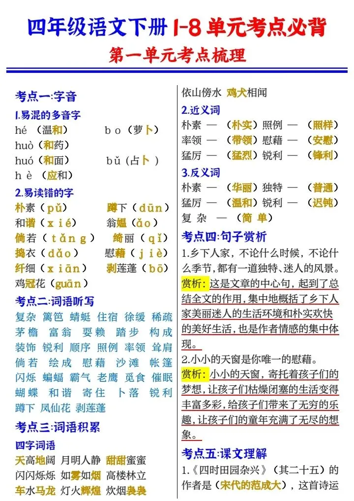 四年级下册1-8单元考点梳理必背(完整电子版可打印)
