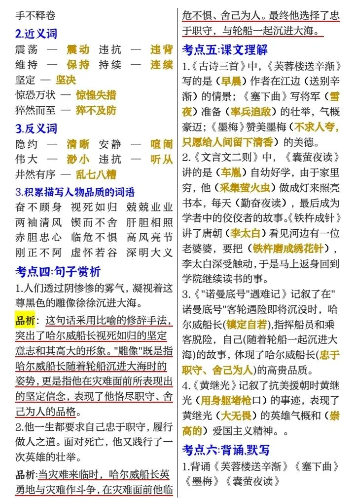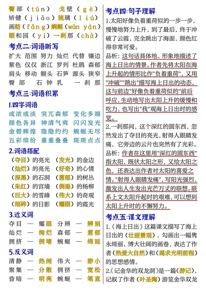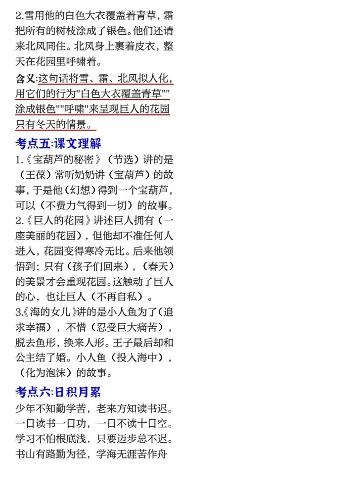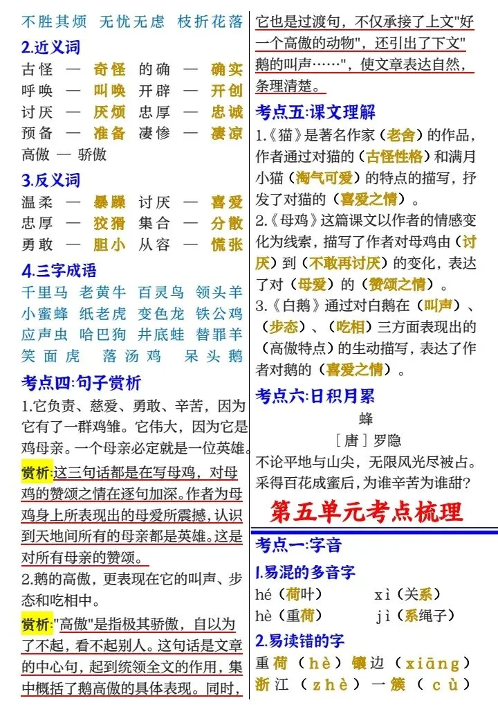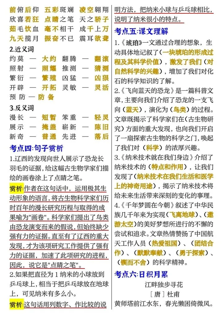四年级下册1-8单元考点梳理必背(完整电子版可打印)