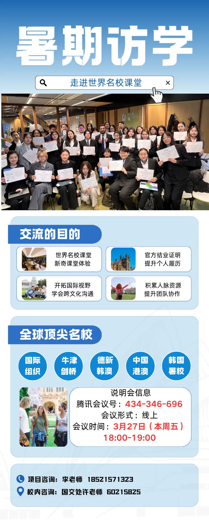 📖 会议主题:2026暑期全球名校访学项目说明会