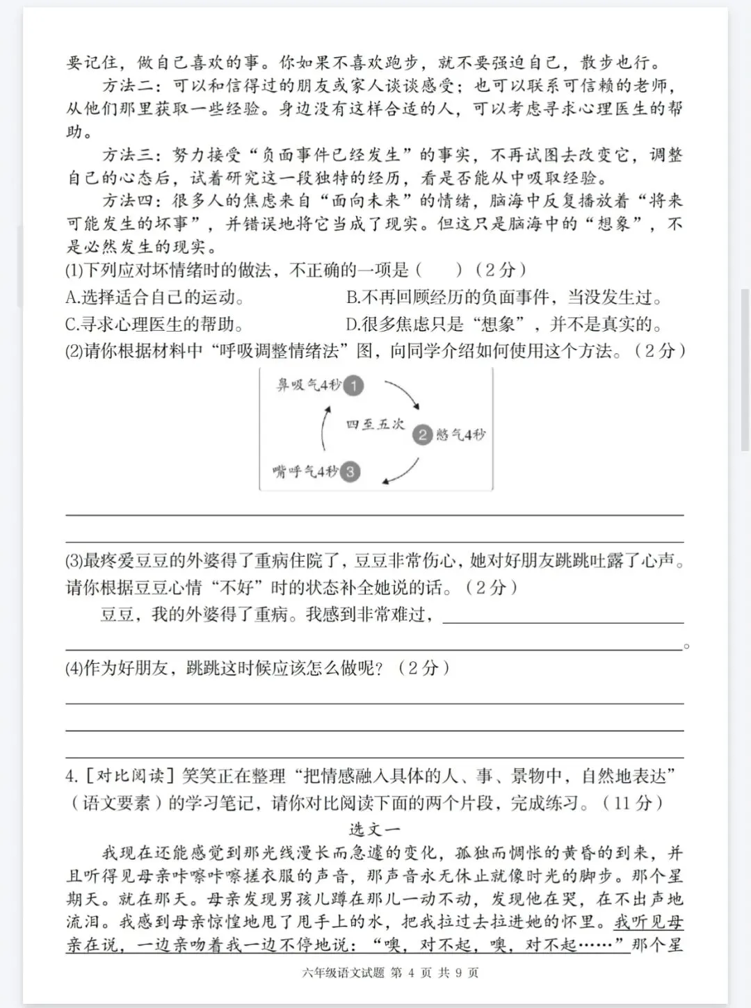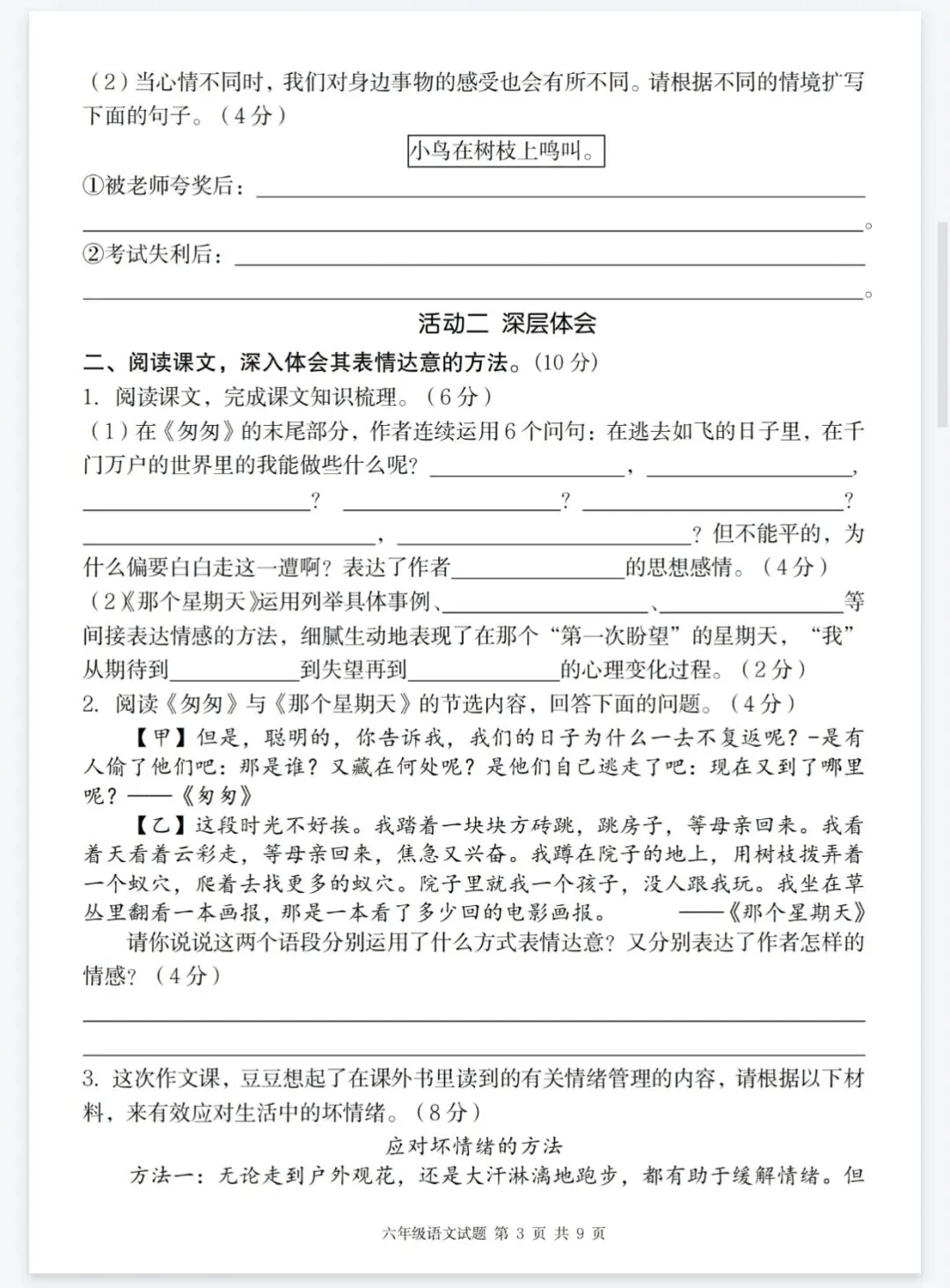 部编版六年级下册语文第三单元情境精编卷综合测试卷,情境题可直接打印有答案