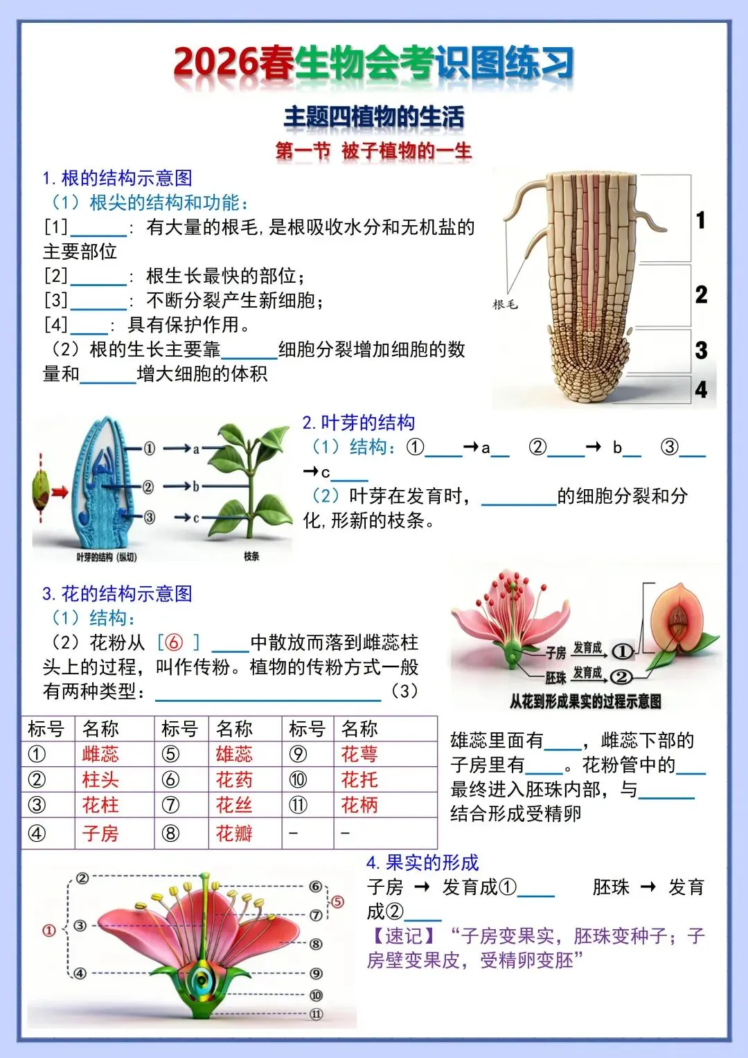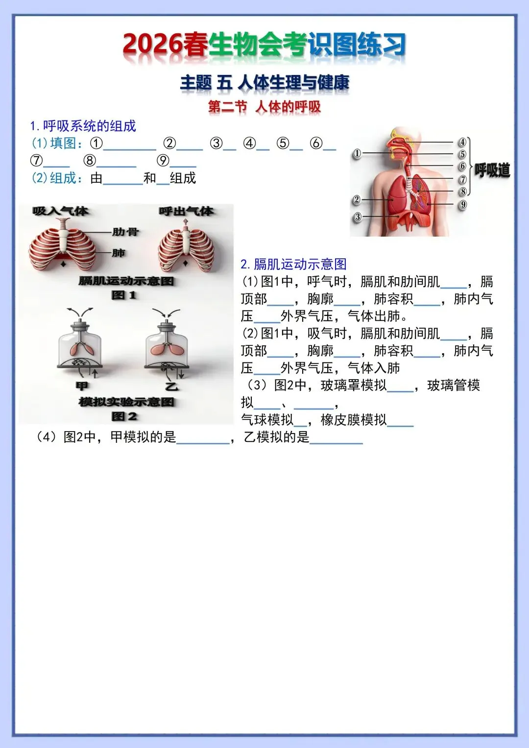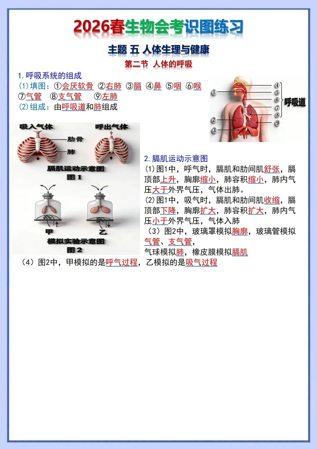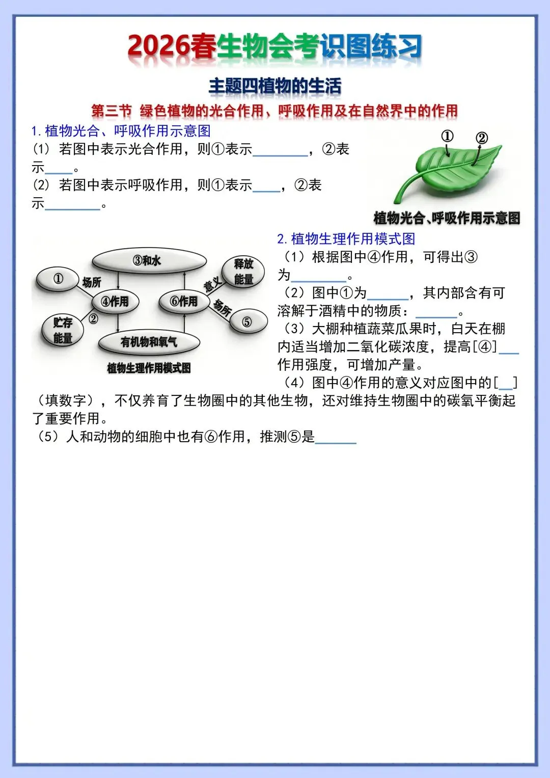 2026 初中生物会考复习识图训练,电子版可打印!