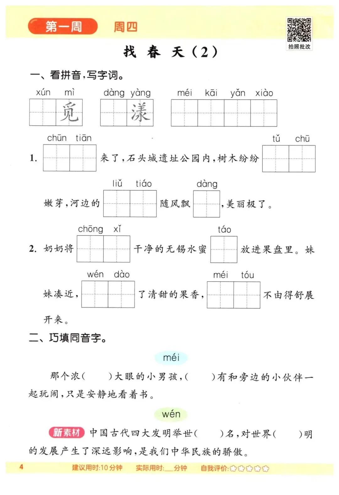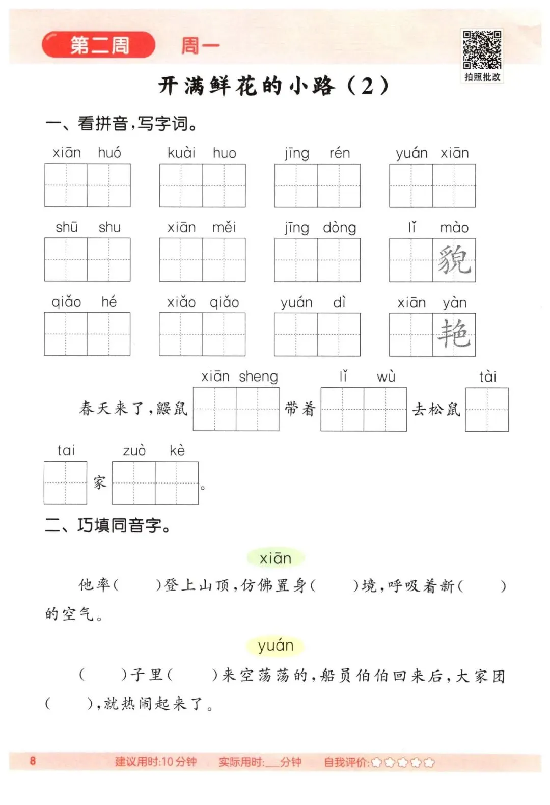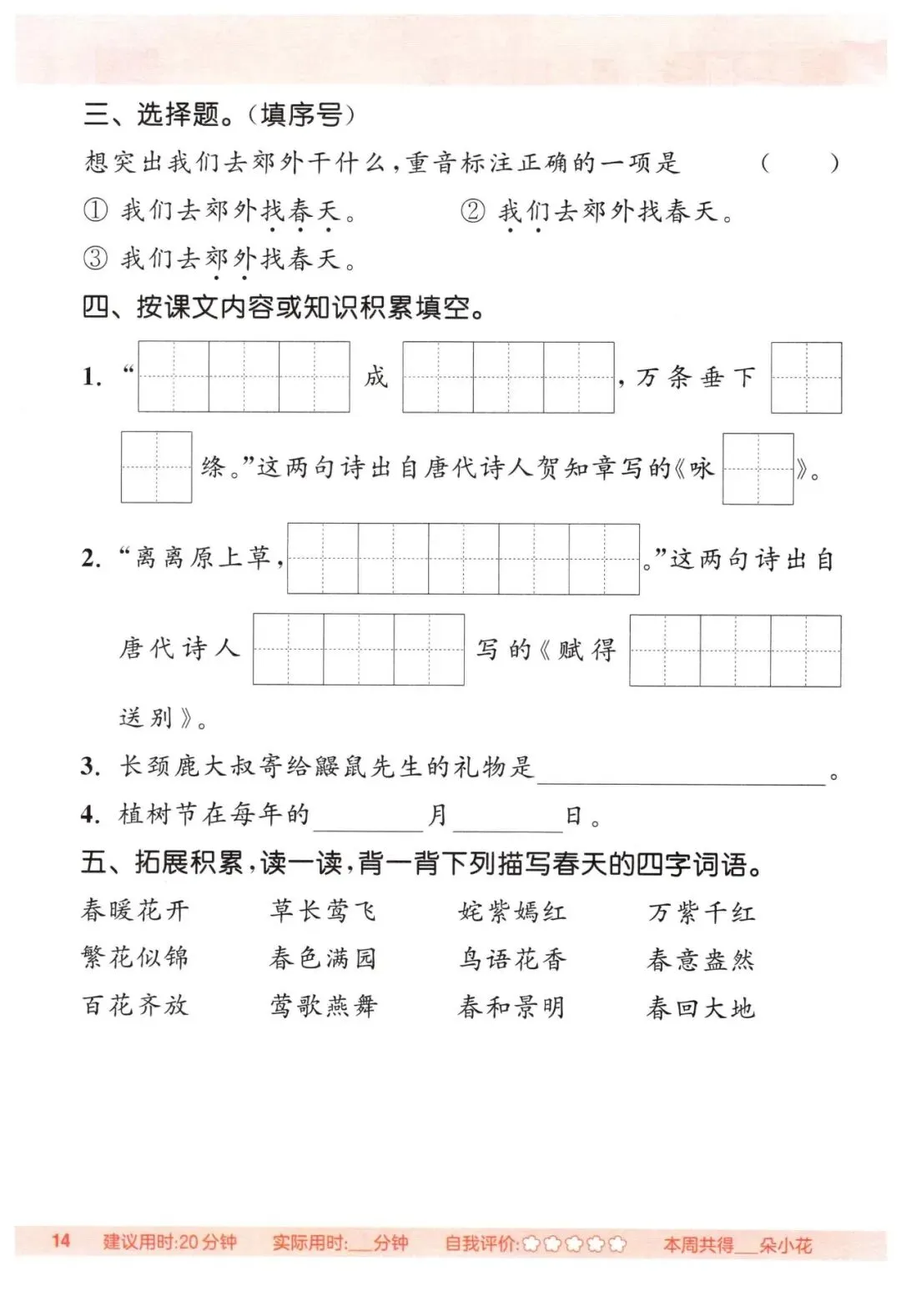 二年级语文下册《默写能手》(领高清PDF打印版)