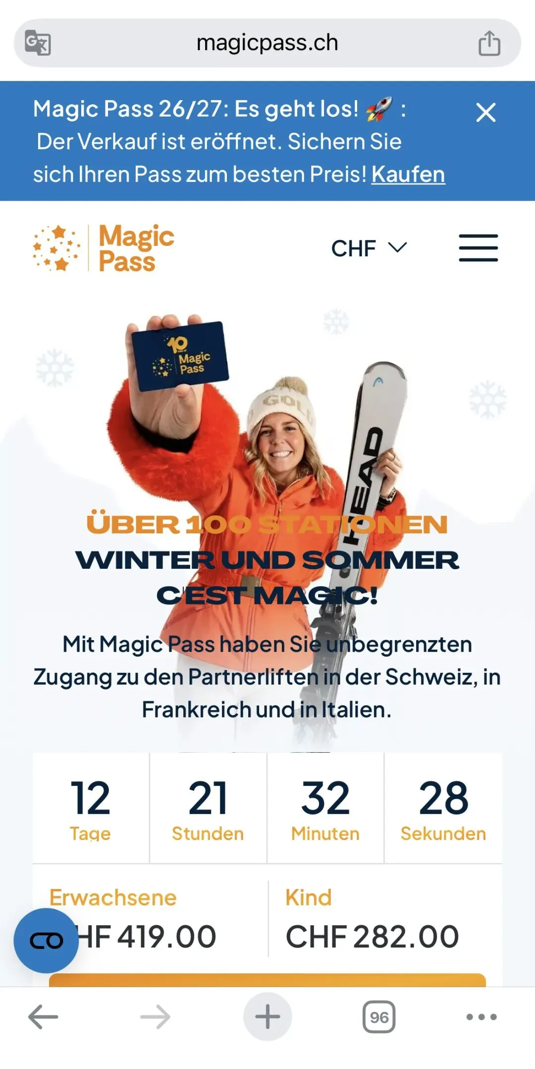 现在已经开始发售,早鸟价419瑞士法郎,在这些雪场普遍不算贵的前提下,依然是很容易回本的。预售4月7日结束,但印象中去年四月份价格依然不错,雪季开始后就要涨到900+了。