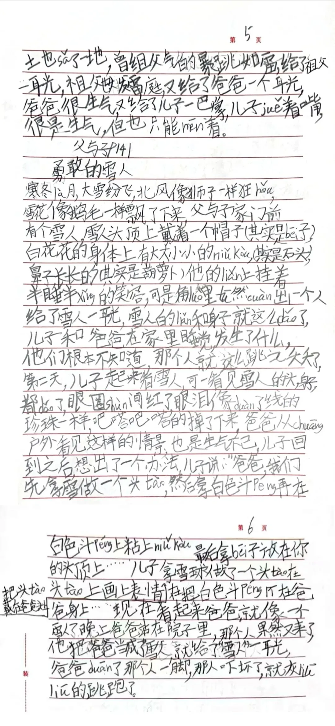父与子漫画:勇敢的雪人,二年级小朋友看图作文